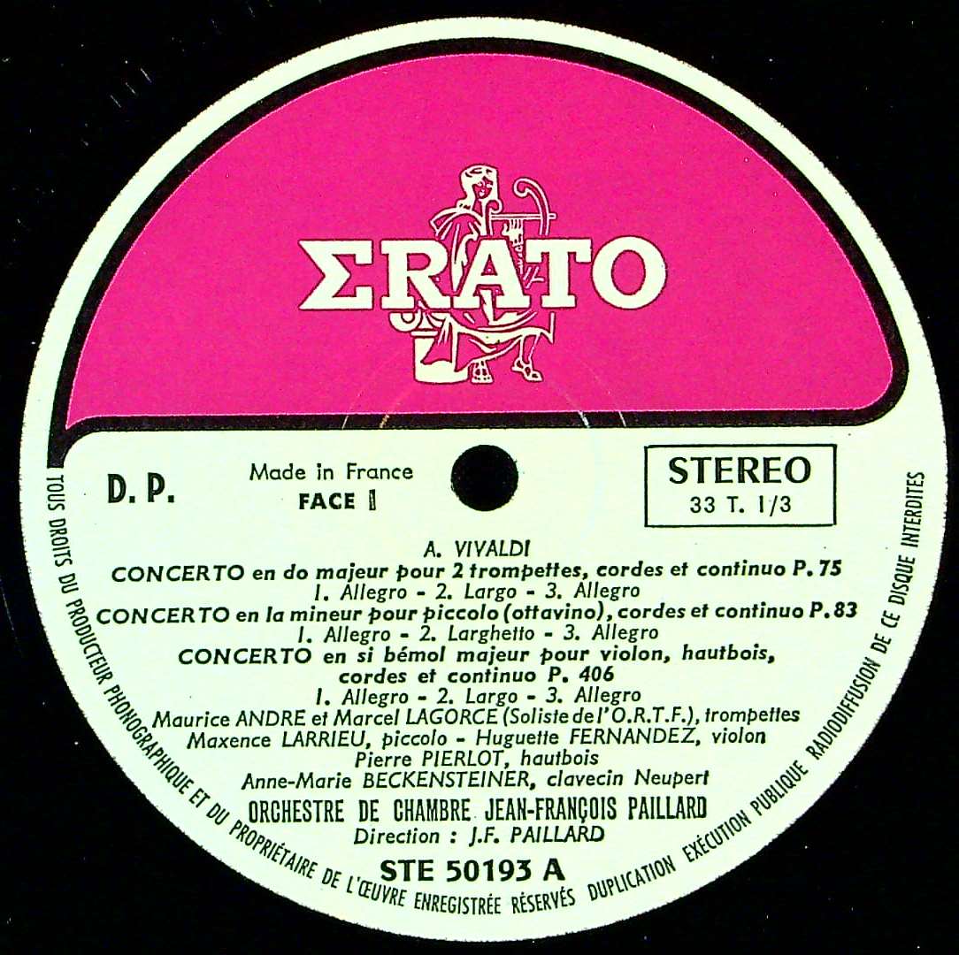 商品コード:REG-4444[仏ERATO] J.Fパイヤール指揮 M.アンドレ(tp) 他 / 「ヴィヴァルディ:協奏曲集」2Tp協奏曲, Picc協奏曲, Vn・Ob協奏曲 他全5曲