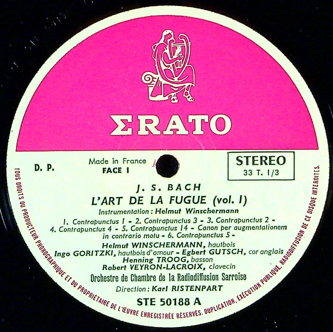 商品コード:REG-4443[仏ERATO] K.リステンパルト/ バッハ:フーガの技法B.1080(Vol.1)