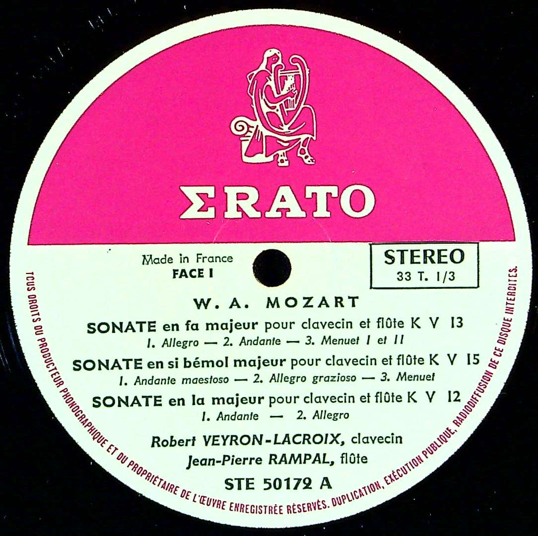 商品コード:REG-4442[仏ERATO] J.P.ランパル(fl) R.ヴェイロン・ラクロワ(cemb) / モーツァルト:6つのFlソナタK.10~15