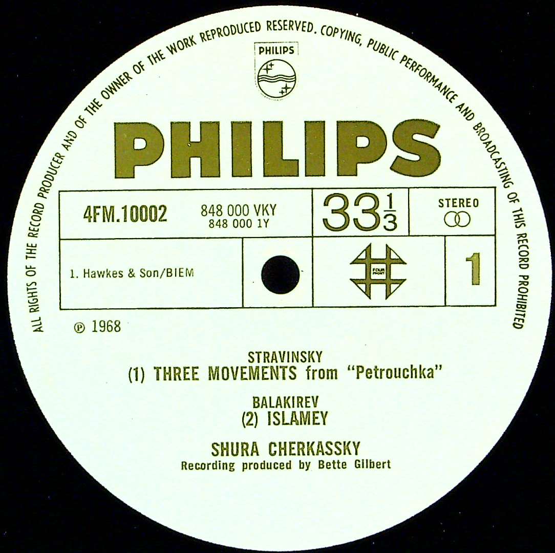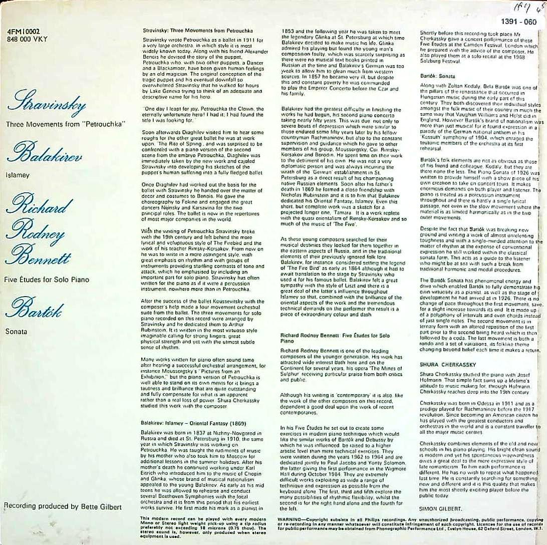 商品コード:1391-060[PHILIPS] S.チェルカスキー(pf) / ストラヴィンスキー:ペトルーシュカからの3楽章, バラキレフ:イスラメイ, .ベネット:5つの練習曲, バルトーク:ソナタ