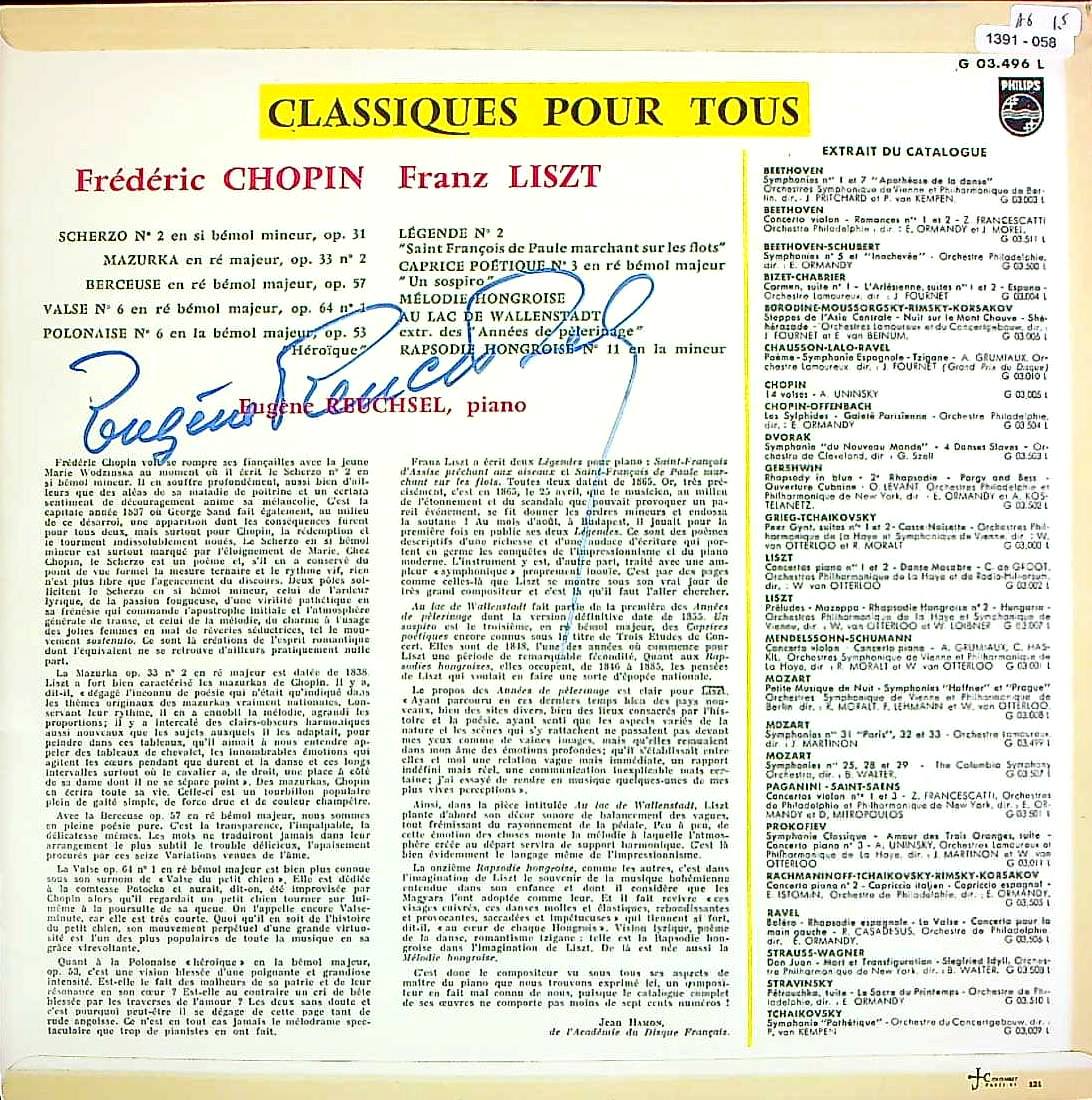 商品コード:1391-058[PHILIPS] E.ルーシュセル(pf) / ショパン:スケルツォ2番, 小犬のワルツ, 英雄ポロネーズ, リスト:ため息, ハンガリー狂詩曲11番 他
