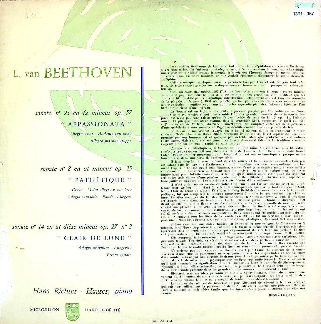 商品コード:1391-057p[PHILIPS] H.リヒター・ハーザー(pf) / ベートーヴェン:Pfソナタ集/23番Op.57「熱情」, 8番Op.13「悲愴」, 14番Op.27-2「月光」