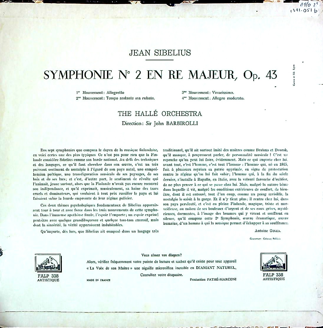 商品コード:1391-051b[VSM] J.バルビローリ/ シベリウス:交響曲2番Op.43