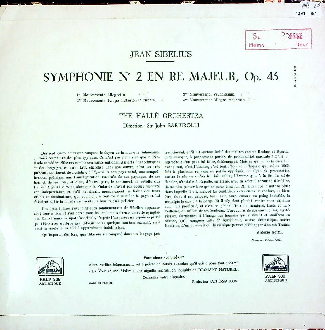 商品コード:1391-051[VSM] J.バルビローリ/ シベリウス:交響曲2番Op.43