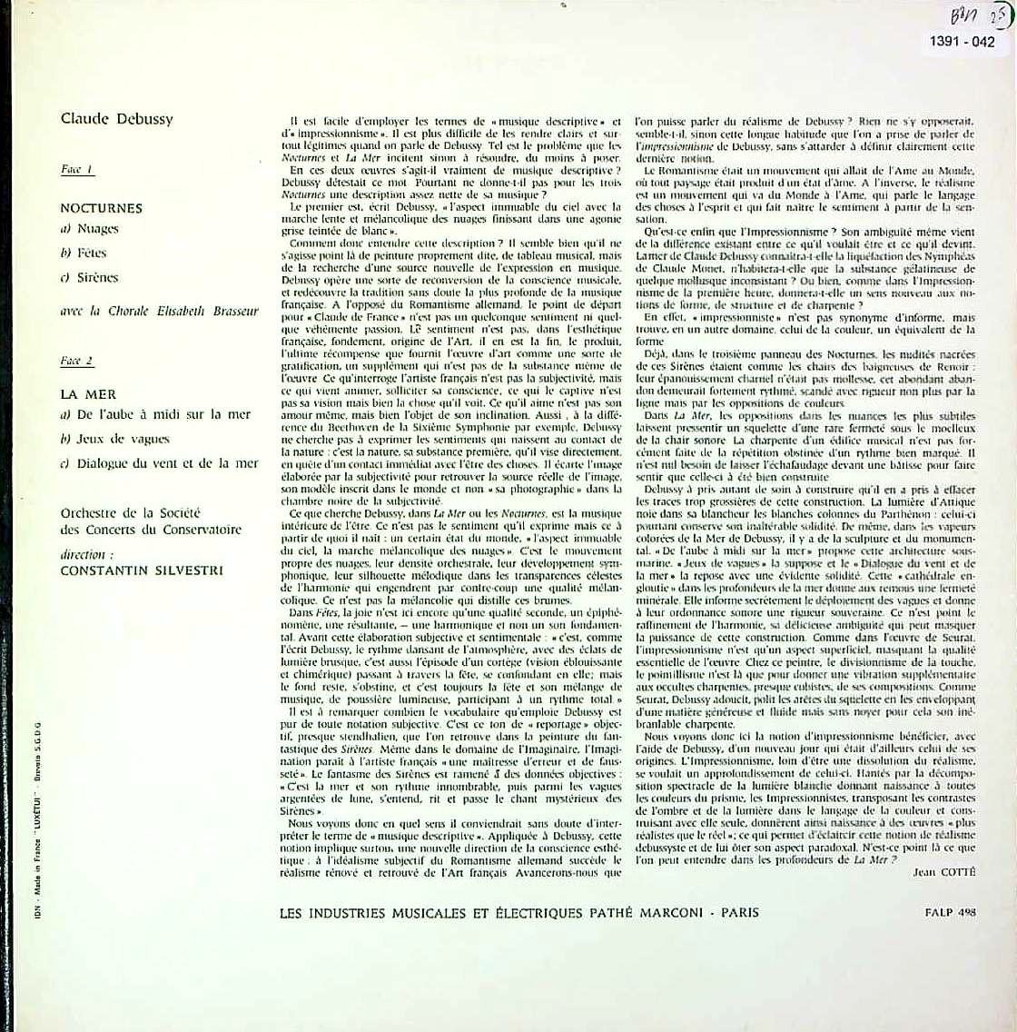 商品コード:1391-042[VSM] C.シルヴェストリ/ ドビュッシー:管弦楽のための組曲「夜想曲」(全3曲), 3つの交響的素描「海」