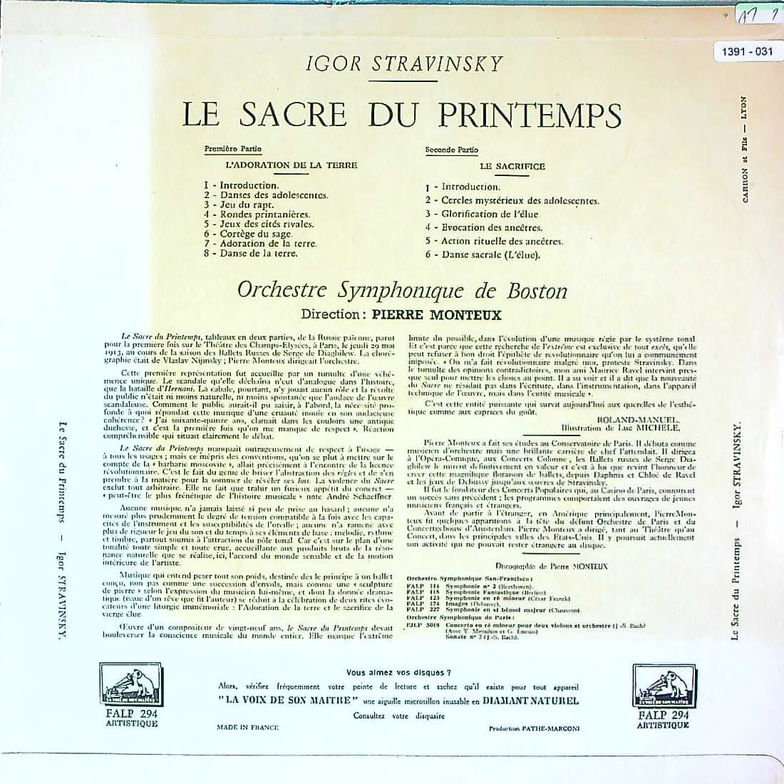 商品コード:1391-031p[VSM] P.モントゥー/ ストラヴィンスキー:春の祭典