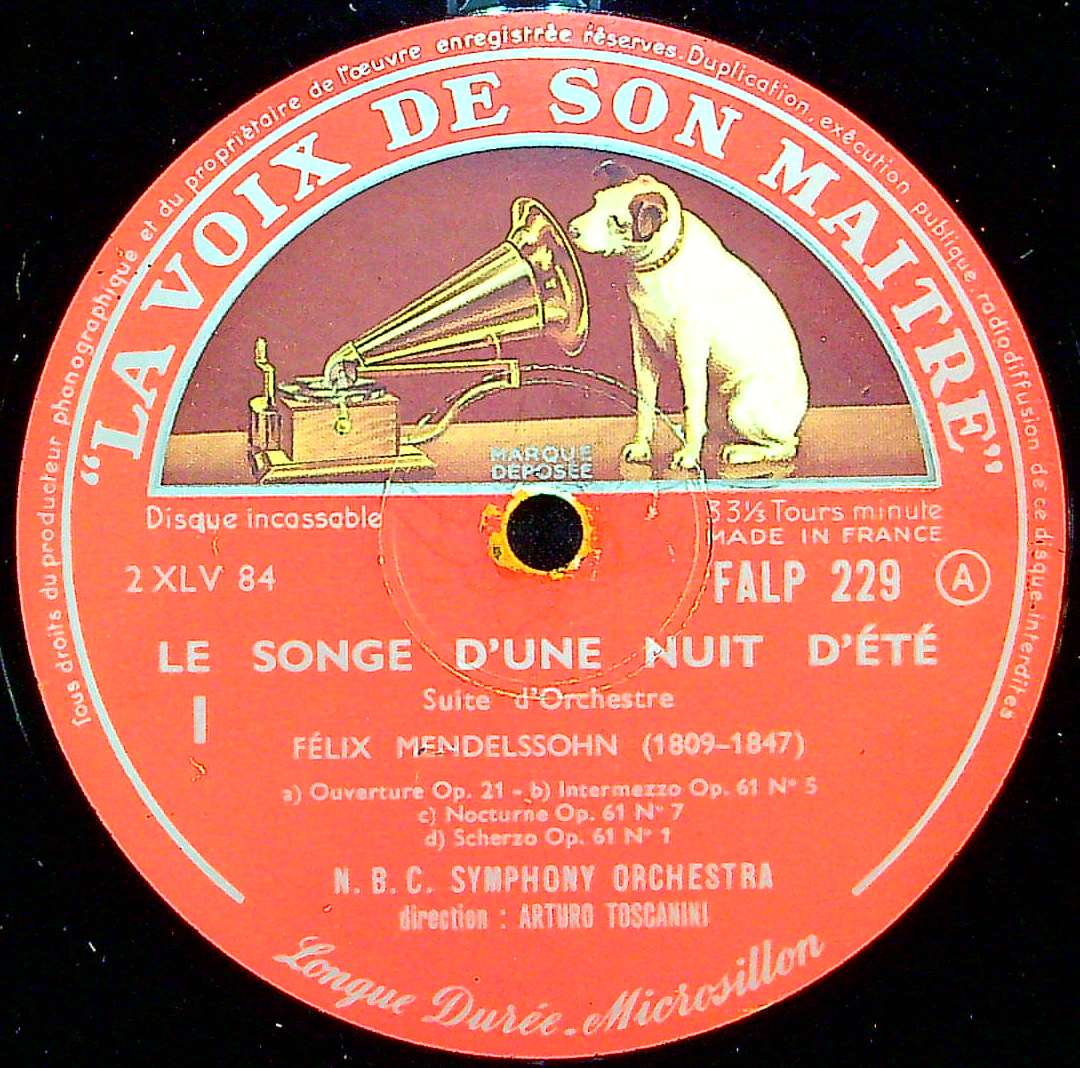 商品詳細:A面とB面の約半分が1947年録音のメンデルスゾーン:組曲「真夏の夜の夢」~6曲で締められる。B面の最後に1945年録音のベートーヴェン:序曲「レオノーレ」3番Op.72aが入る。米国では「真夏の夜の夢」は当初45回転7"×3枚箱入りで初リリース,翌年ドビュッシー:海とのカップリングでLP・LM 1221で発売された。序曲「レオノーレ」3番はフィデリオ全曲箱の余白で初リリースされた。このカップリングの12"はフランスとイタリアの2カ国だけと思われる。英国での発売は不明。古い録音だがまずまず聴ける音質である。劇付随音楽「真夏の夜の夢」は序曲+12曲で構成されるが、「スケルツォ」「間奏曲」「夜想曲」「結婚行進曲」の4曲が選曲されて、組曲「夏の夜の夢」として演奏されることが一般的である。トスカニーニはソプラノ・メゾソプラノ独唱と女声合唱付きの「終曲」を付けて序曲+5曲構成とした。歌が入ることでより劇付随音楽「真夏の夜の夢」に近い雰囲気が出ている。全体に暗調な音色でさらりとした仕上がり。早めのテンポではあるが違和感はなく、聴いているうちに妥当なテンポだと感じてくる。終曲「妖精の歌」で登場する歌手エドナ・フィリップス(ソプラノ)がなかなかの味わいで、短い演奏だがインパクトはある。圧倒的な推進力を感じる演奏。