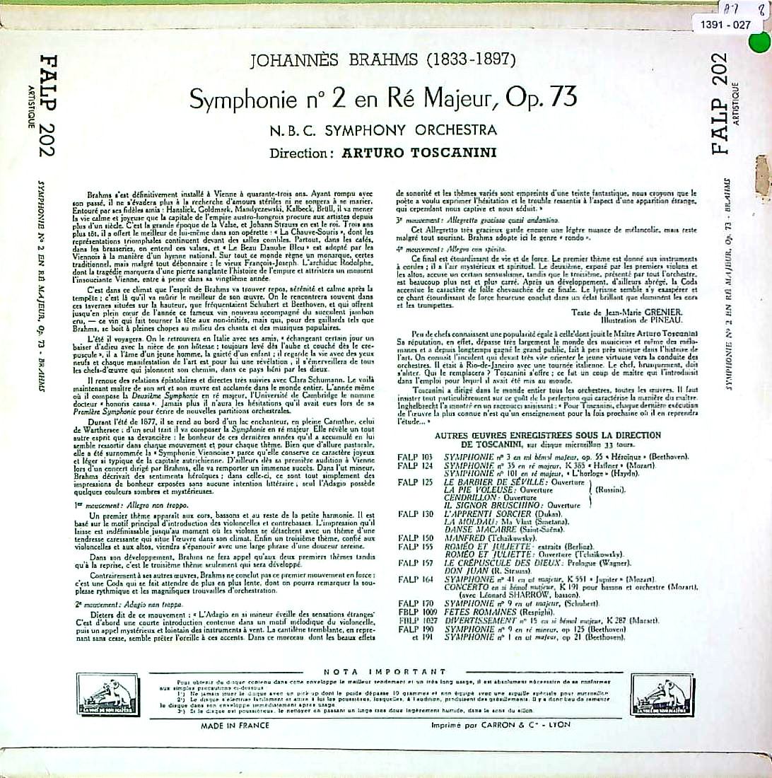 商品コード:1391-027[VSM] A.トスカニーニ / ブラームス:交響曲2番Op.73