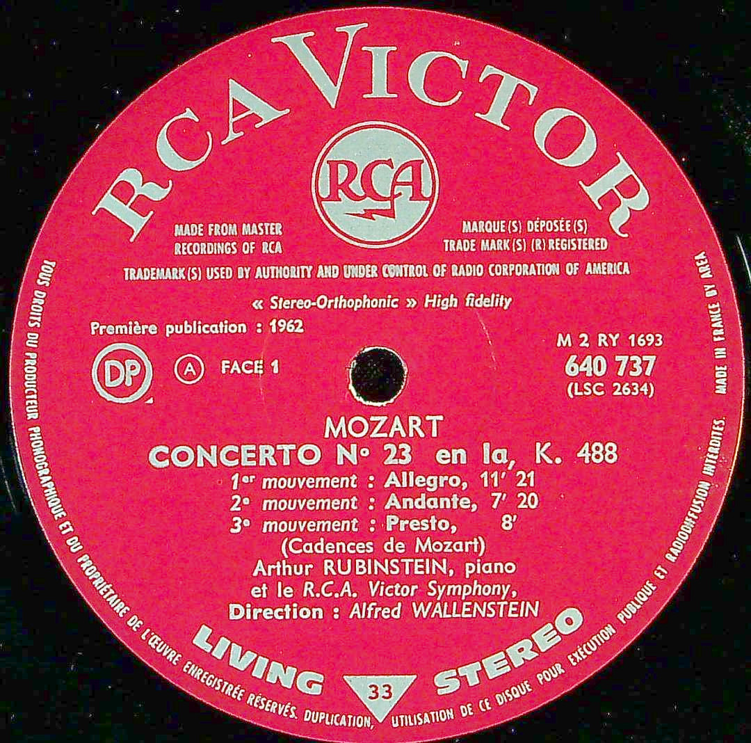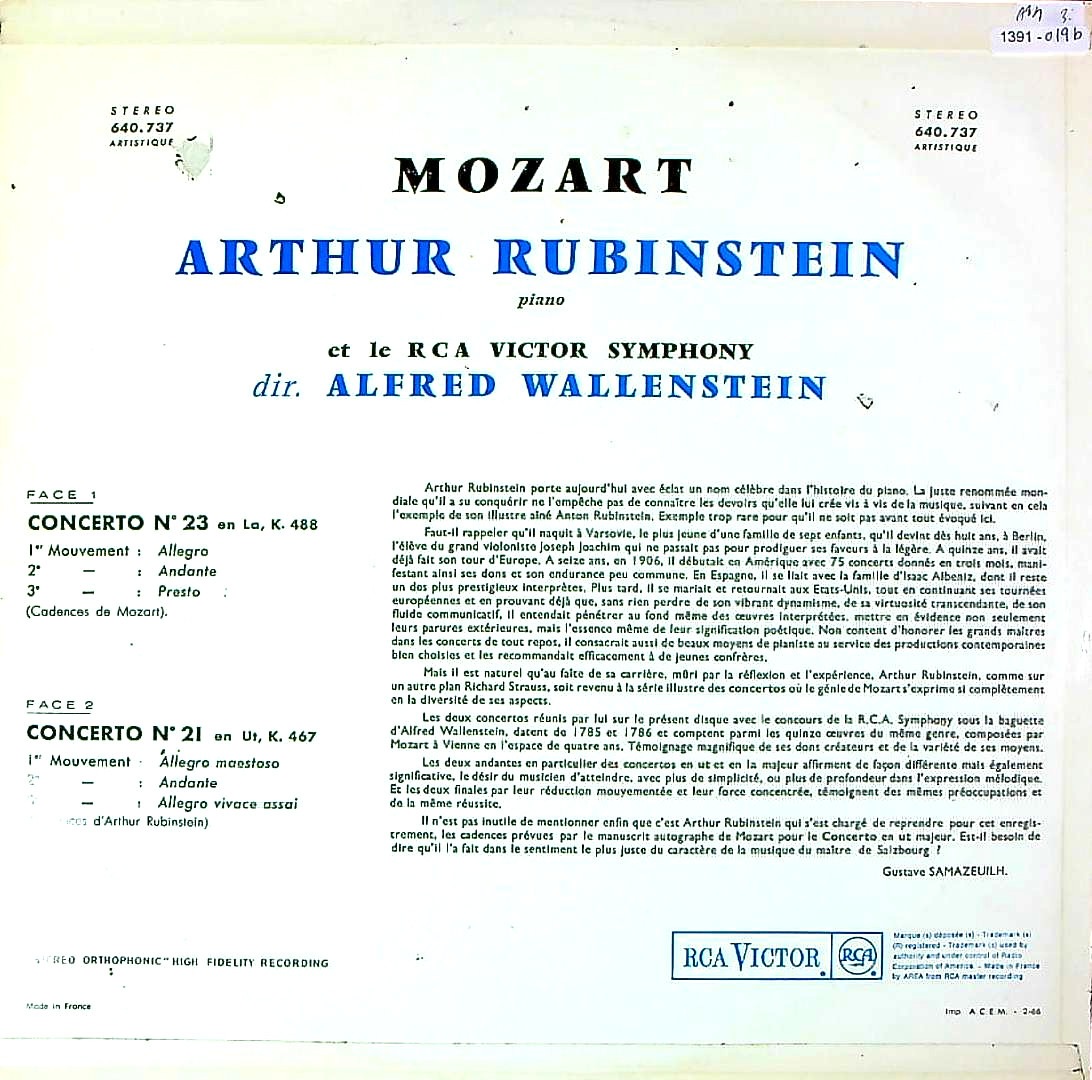 商品コード:1391-019b[RCA] A.ルービンシュタイン(pf)/ モーツァルト:Pf協奏曲23番K.488, 21番K.467