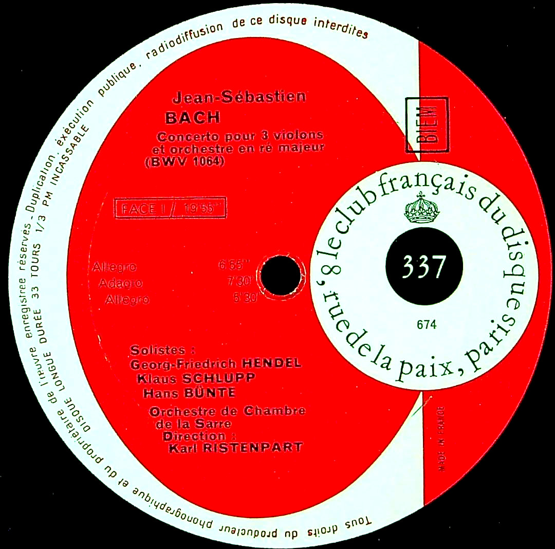 商品コード:1391-012[Club Français] K.リステンパルト G.F.ヘンデル 他(vn)/ バッハ:3Vn協奏曲BWV.1064, Vn・Fl・Cembのための三重協奏曲BWV.1044