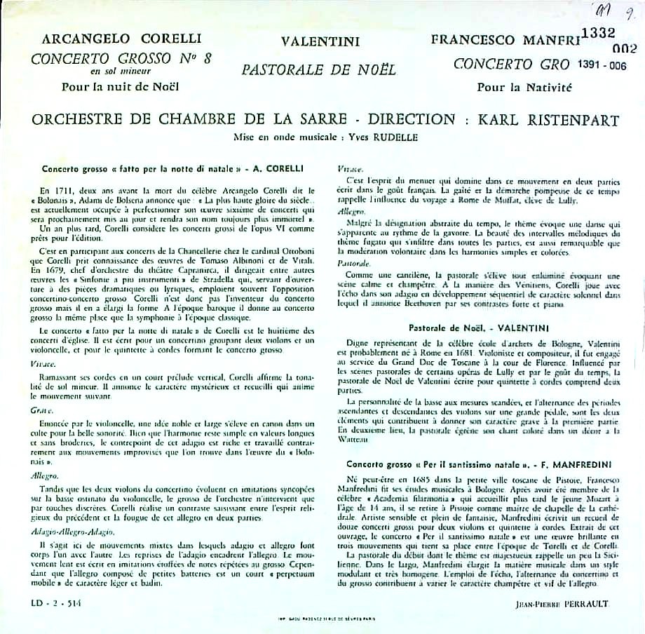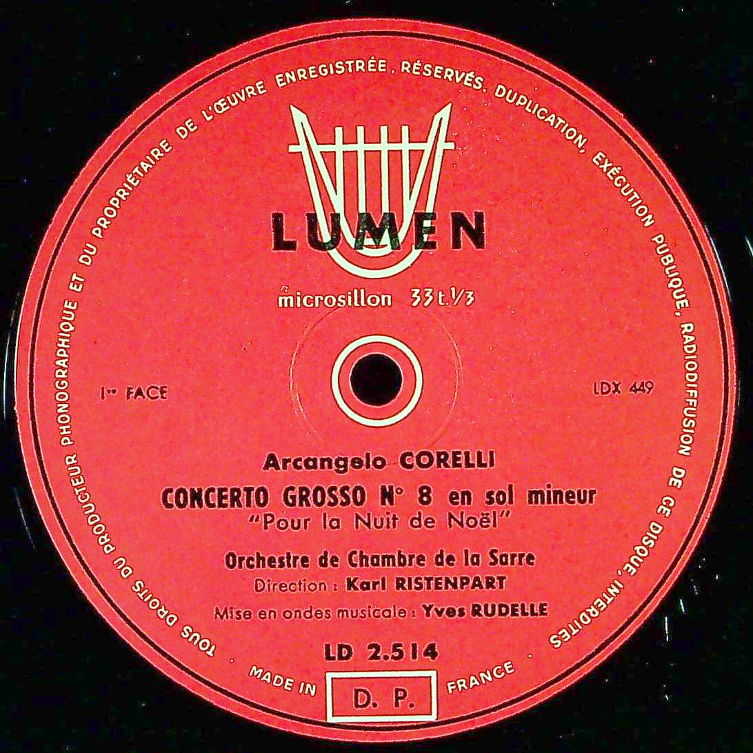 商品詳細:17世紀イタリア・バロックの作曲家によるクリスマスに因んだ作品を収録。後期バロックのトリオ・ソナタや合奏協奏曲などの様式の確立に多大な影響を及ぼしたコレッリを代表する作品の一つ、合奏協奏曲Op.6-8「クリスマス」、コンチェルティーノとリピエーノのコントラストは勿論、連続した掛留音をはじめ、その美しい旋律・響きには驚かされる。ヴァレンティーニ、マンフレディーニの作品と合わせイタリア・バロックの傑作をK.リステンパルト指揮ザール室内o.の演奏で聴いていただきたい。K.リステンパルト指揮ザール室内o.は1950年代中期DFと平行してLUMENにも数点の録音があった。そのどれもが希少である。LUMEN録音は恐らく全てが10"で発売されたものと思われる。LUMENはEditions Studio S.M.の一レーベルで1950年代初期に発足したレコードレーベルでクラシック専門ではない。LUMENはフランス語ではなくラテン語で「昼光」を意味する語である。なのでルマンではなくルーメンと発音し、光束(光量)の単位であるルーメンと同じ語源である。蛇足だが光度はカンデラ、照度はルクスが単位である。LUMENの音質はDFとはまた異なる滑らかな物で荒々しいものではない。バロック音楽が専門のリステンパルトはドイツ人だが、当時からフランスのレーベルから熱い視線を送られていて、ドイツ・ザールラントを拠点に活動しており、フランス側に近い場所であり、LUMEN、DFの後はERATO、Le Club Français Du Disque等フランスのレーベルばかりに録音がある指揮者である。