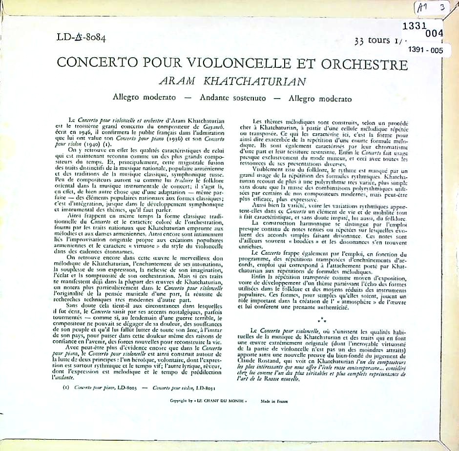 商品コード:1391-005[Chant du Monde] S.クヌシェヴィツキー(vc)/ ハチャトゥリアン:Vc協奏曲