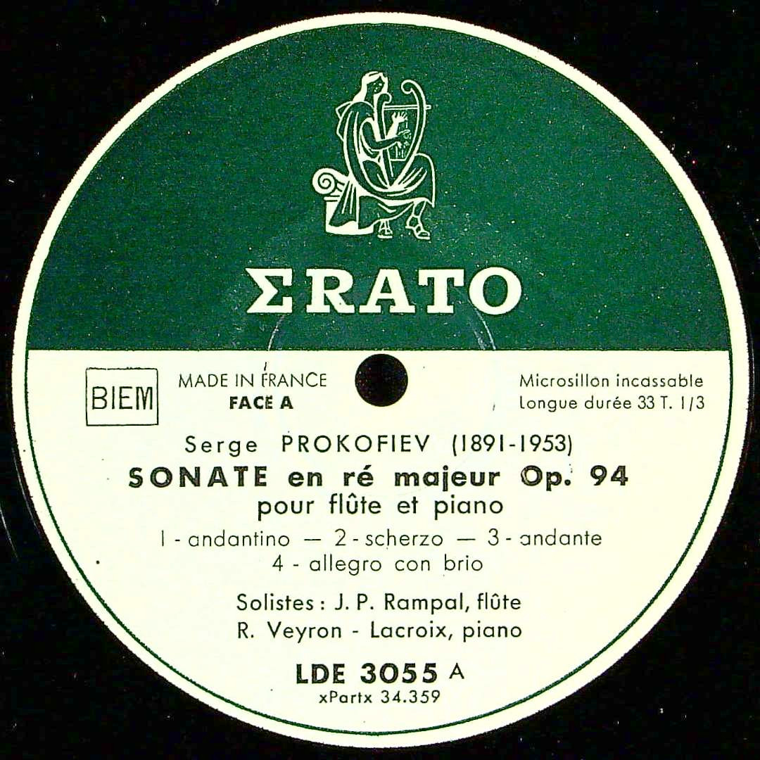 商品コード:1392-060[ERATO] J.P.ランパル(fl)/ プロコフィエフ:FlソナタOp.94, マルティヌー:Flソナタ, ヒンデミット:Flソナタ