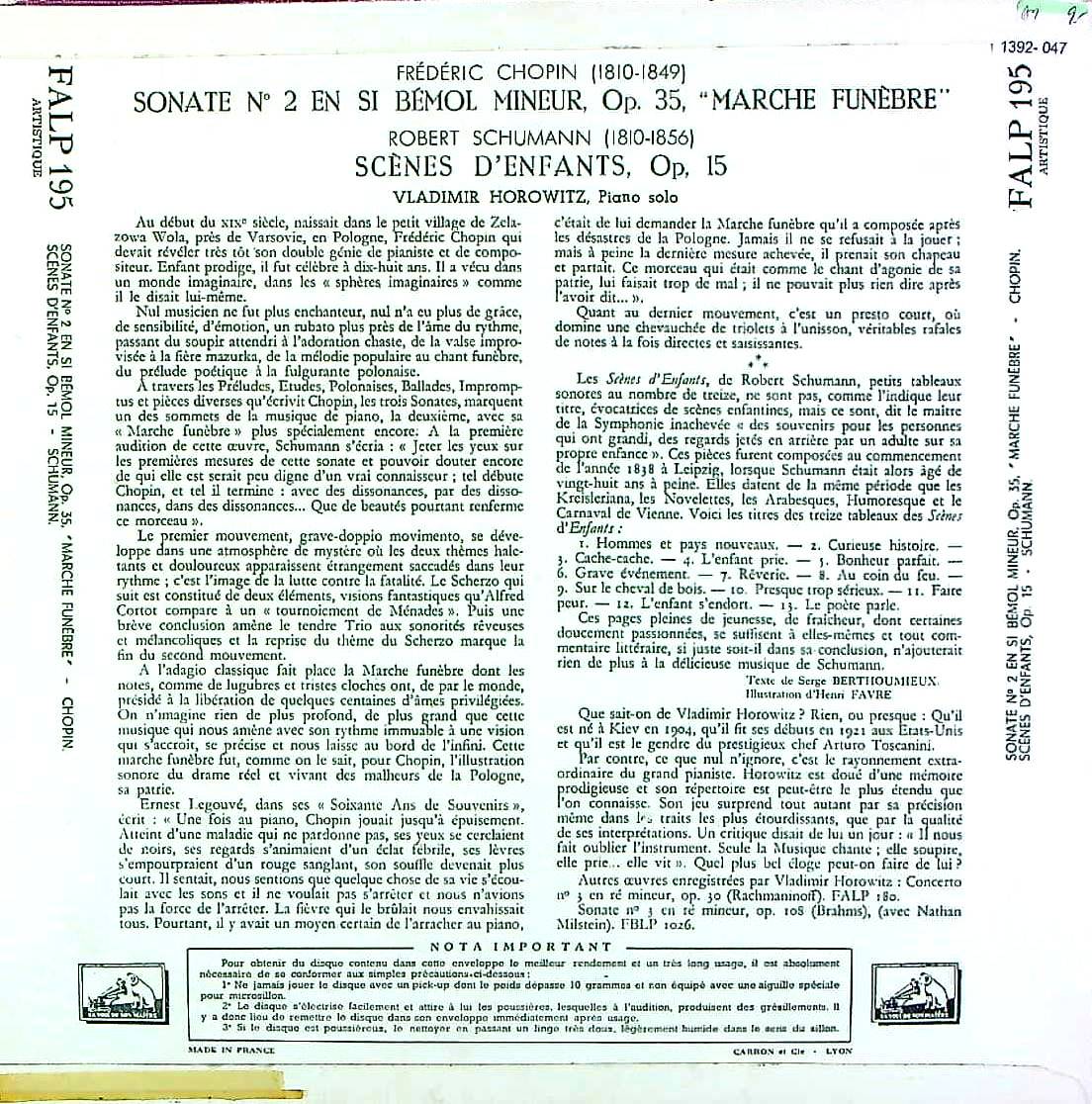 商品コード:1392-047p[VSM] V.ホロヴィッツ(pf) / ショパン:Pfソナタ2番Op.35, シューマン:子供の情景Op.15