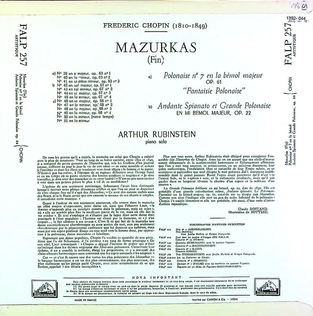 商品コード:1392-044[VSM] A.ルービンシュタイン(pf) / ショパン:マズルカ全集Vol.1~3/ マズルカ1~51番, 幻想ポロネーズOp.61, 華麗な大ポロネーズOp.22