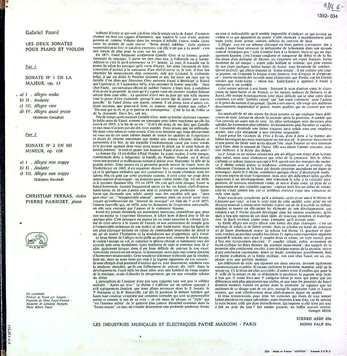 商品コード:1392-034[VSM] C.フェラス(vn) P.バルビゼ(pf) / フォーレ:Vnソナタ1番Op.13, Vnソナタ2番Op.108