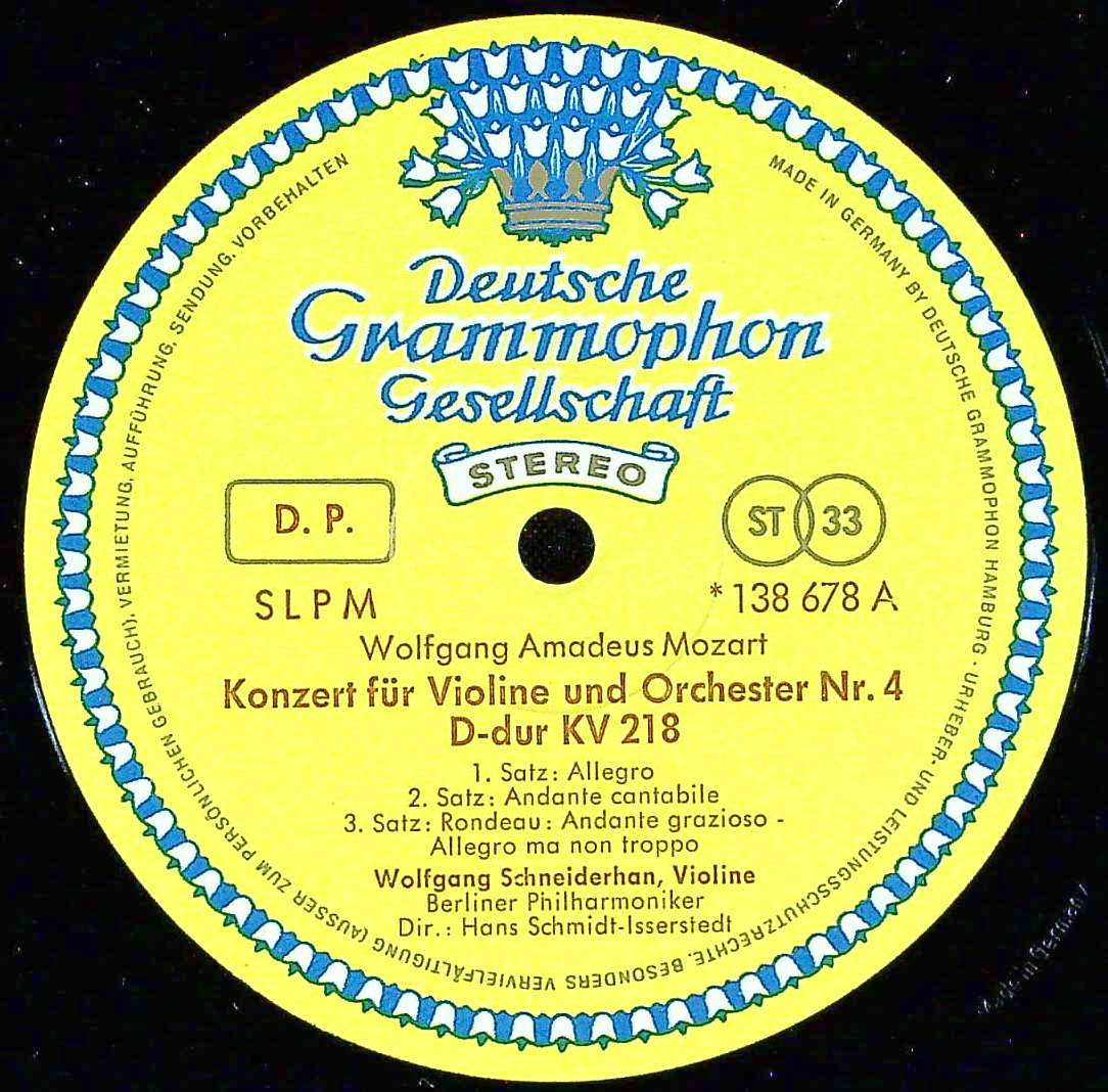 商品コード:REG-4487[独DGG] W.シュナイダーハン(vn)/ モーツァルト:Vn協奏曲4番K.218, 5番K.219