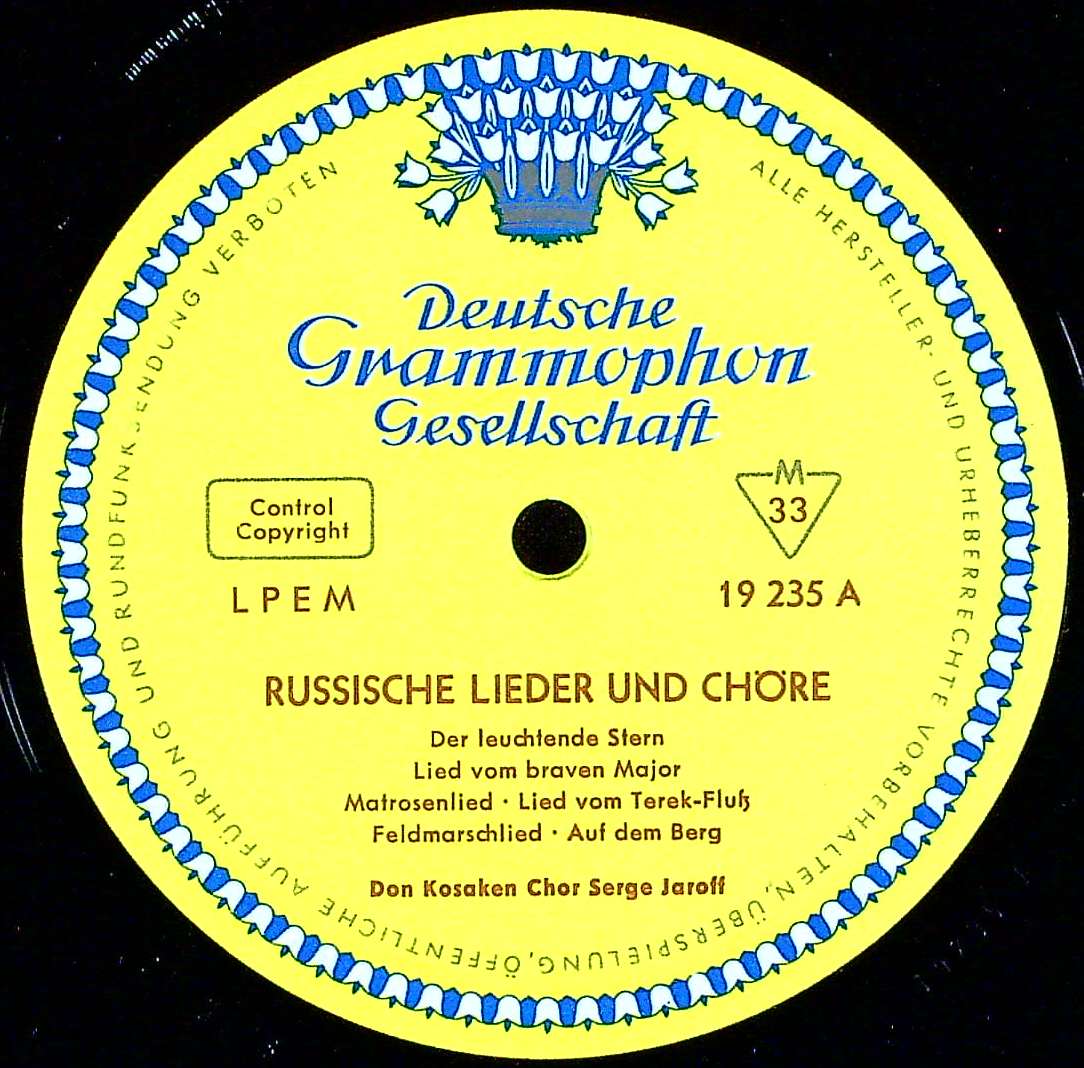商品コード:REG-4485[独DGG] S.ヤロフ/ 「ロシアの歌と合唱」輝く星, 良き少佐の歌, 船乗りの歌, テレク川の歌, 山の上で, 盗賊の歌, 他(全13曲)
