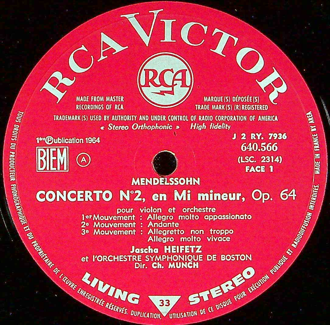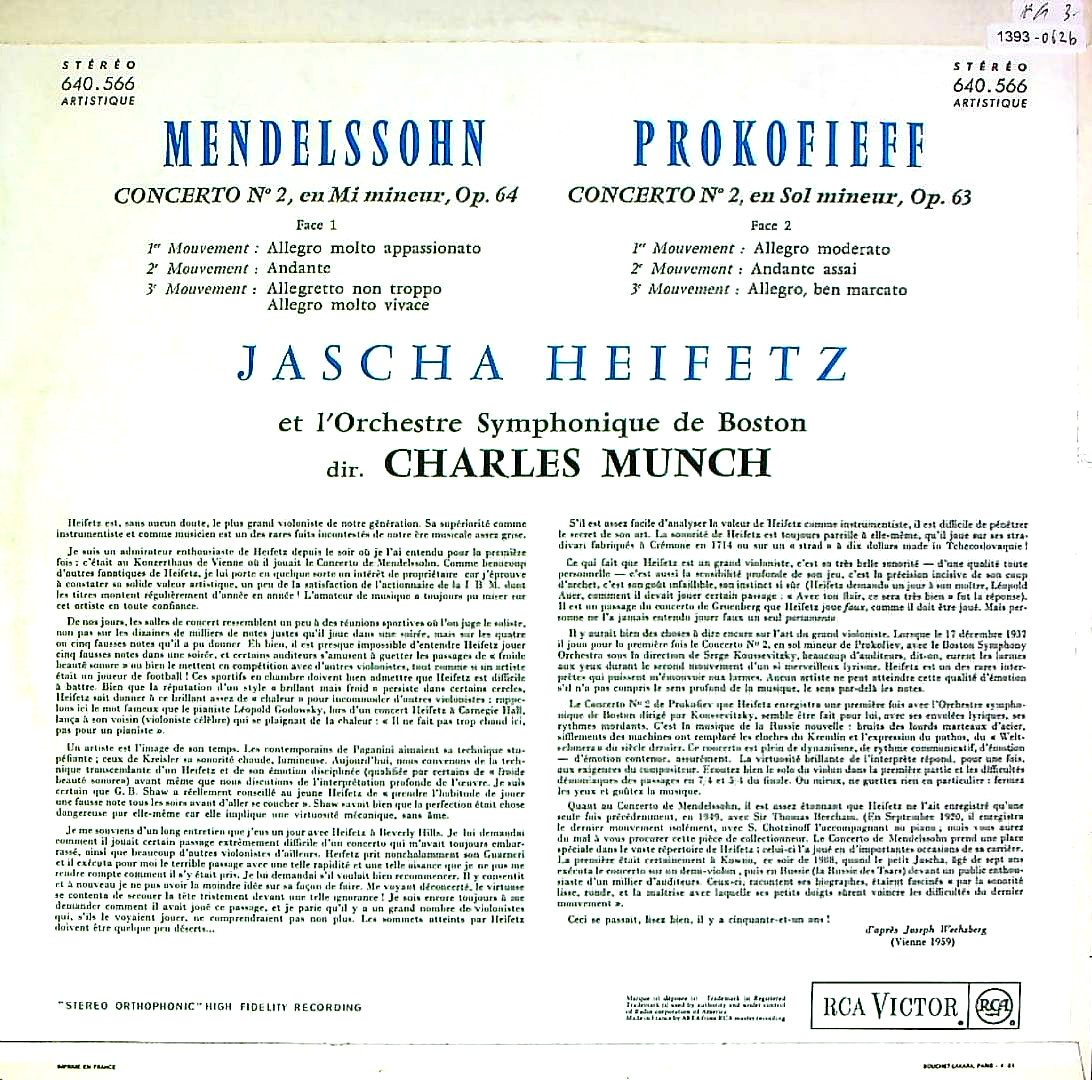 商品コード:1393-062b[RCA] J.ハイフェッツ(vn)/ メンデルスゾーン:Vn協奏曲Op.64, プロコフィエフ:Vn協奏曲2番Op.63