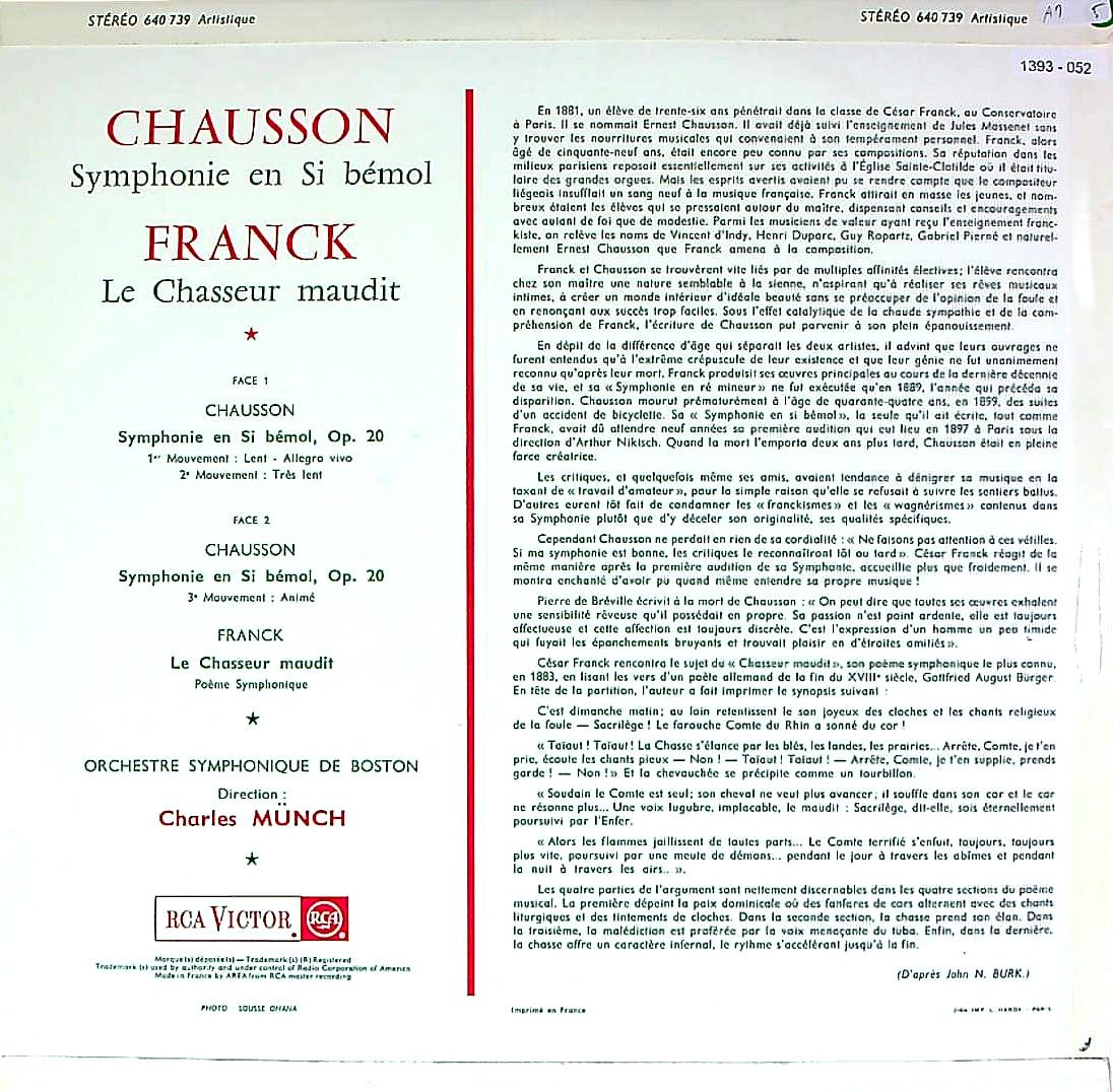 商品コード:1393-052[RCA] C.ミュンシュ/ ショーソン:交響曲 Op.20, フランク:交響詩「のろわれた狩人」