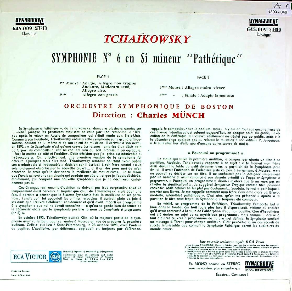 商品コード:1393-049[RCA] C.ミュンシュ/ チャイコフスキー:交響曲6番Op.74「悲愴」