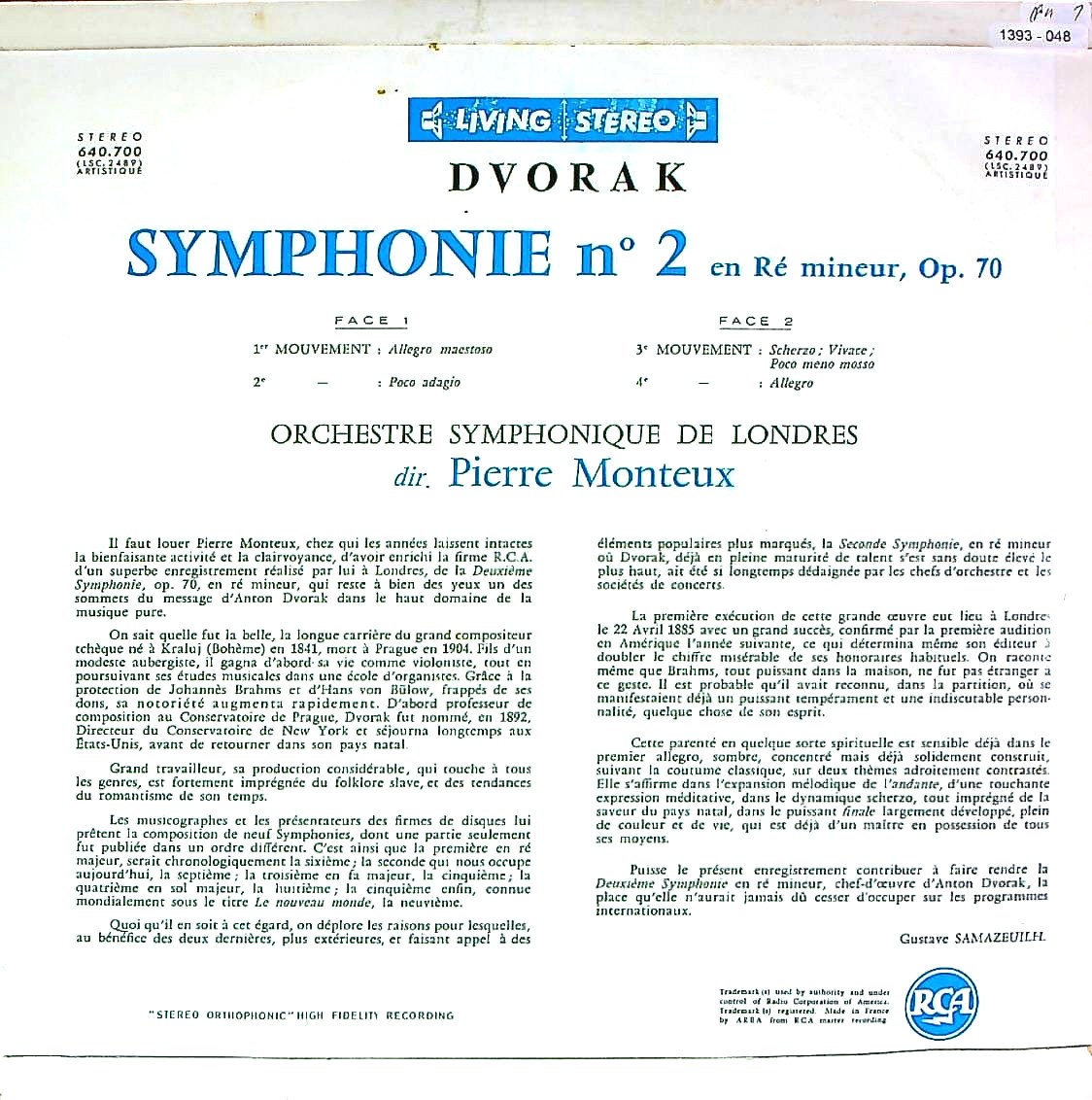 商品コード:1393-048[RCA] P.モントゥー/ ドヴォルザーク:交響曲7番Op.70