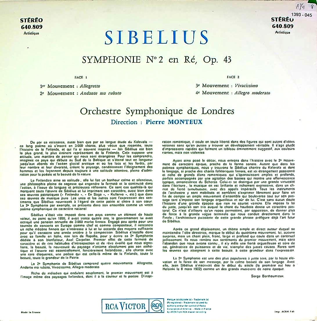 商品コード:1393-045[RCA] P.モントゥー/ シベリウス:交響曲2番Op.43