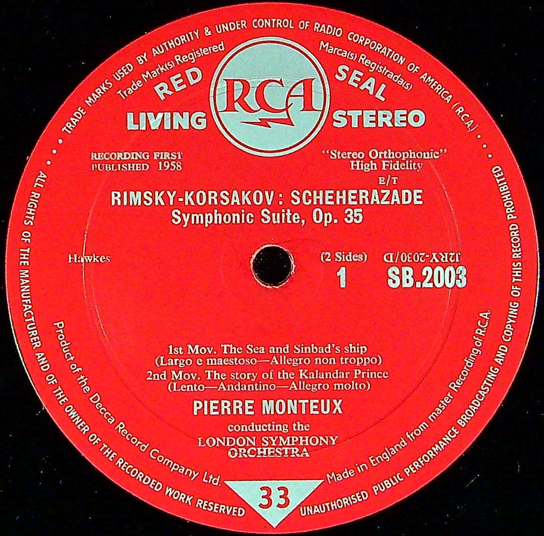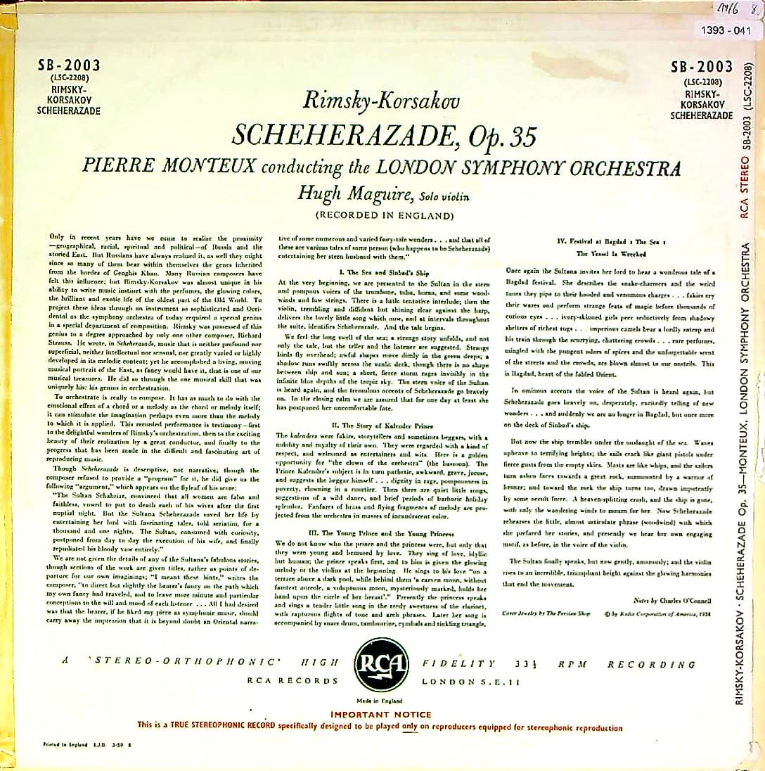 商品コード:1393-041[RCA] P.モントゥー/ リムスキー・コルサコフ:交響組曲「シェヘラザード」Op.35