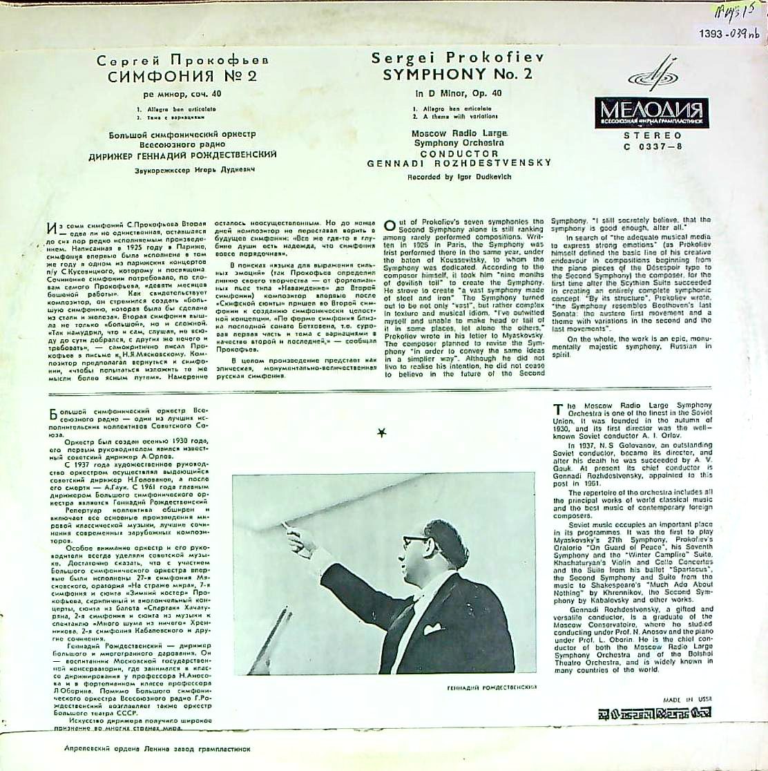 商品コード:1393-039nb[MELODIYA] G.ロジェストヴェンスキー/ プロコフィエフ:交響曲2番Op.40