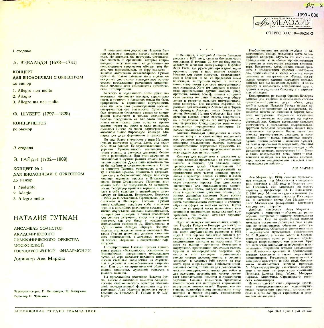 商品コード:1393-038n[MELODIYA] N.グートマン(vc)/ ヴィヴァルディ:Vc協奏曲Rv.400, シューベルト:小協奏曲D.345, ハイドン:Vc協奏曲1番Hob.VIIb-1
