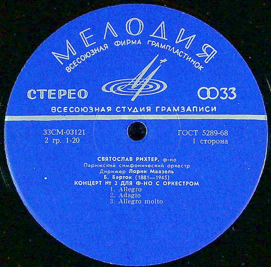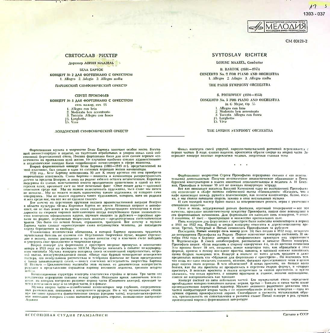 商品コード:1393-037n[MELODIYA] S.リヒテル(pf)/バルトーク:Pf協奏曲2番, プロコフィエフ:Pf協奏曲5番Op.55