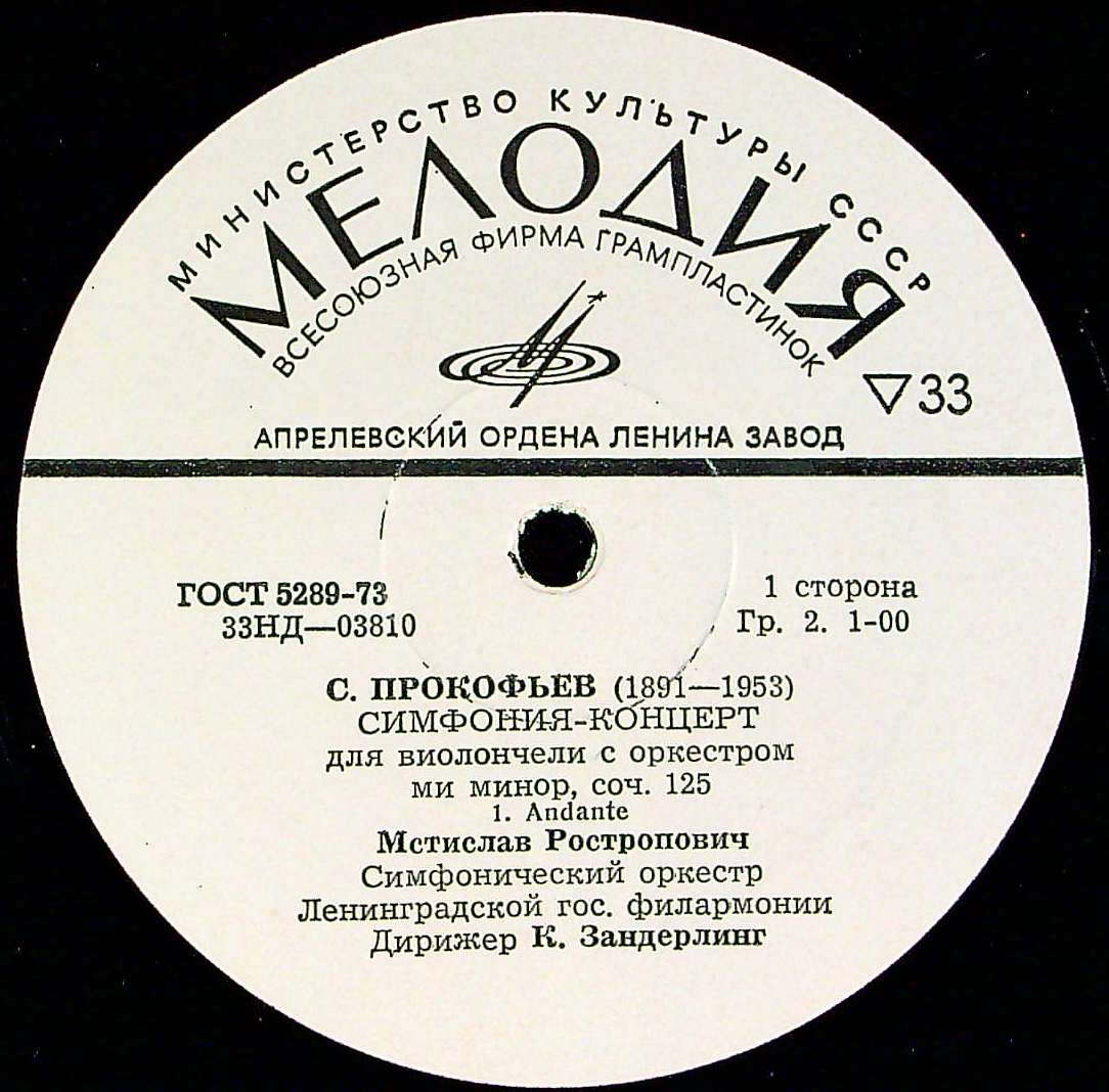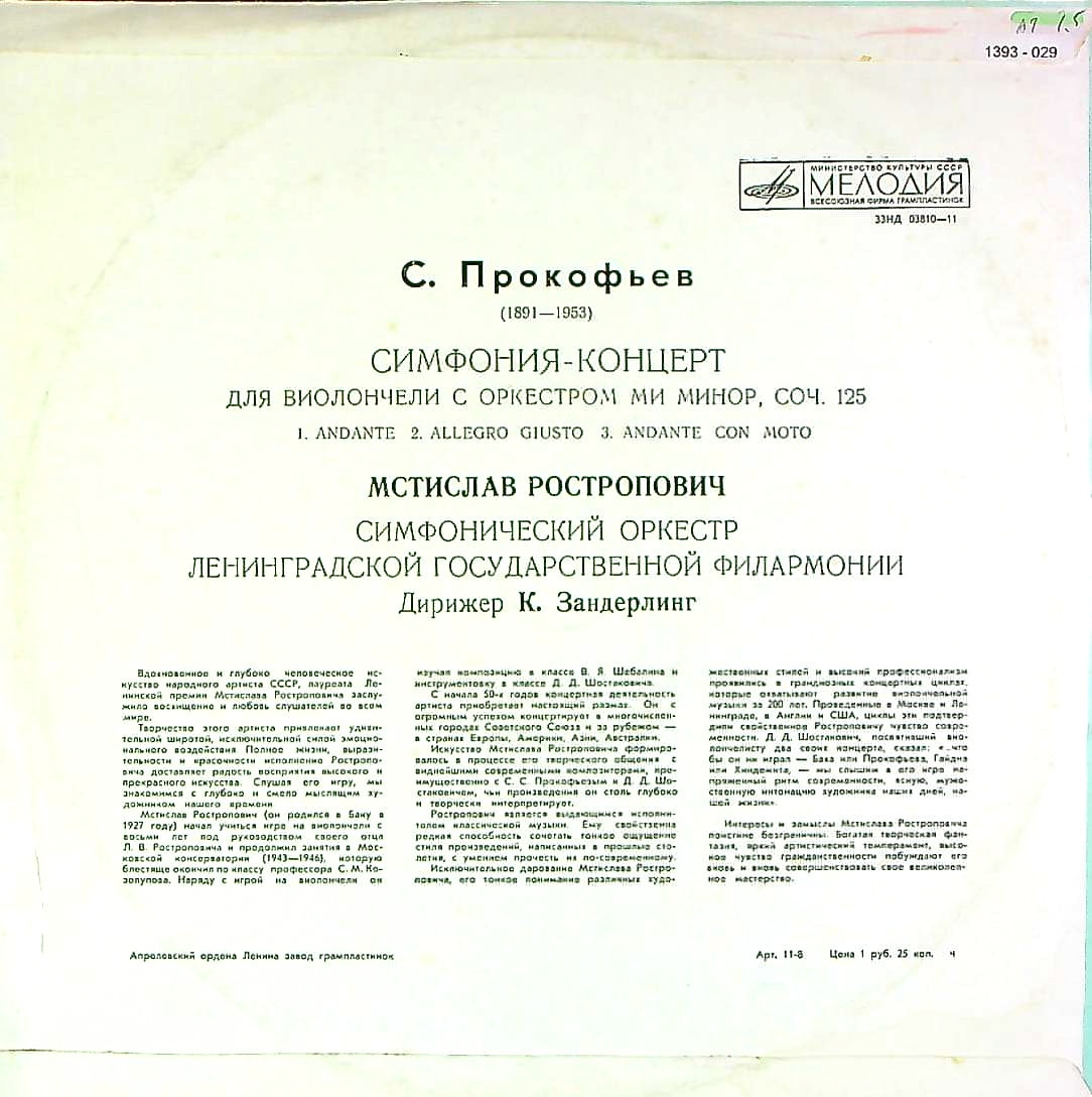 商品コード:1393-029p[MELODIYA] M.ロストロポーヴィチ(vc) K.ザンデルリング/ プロコフィエフ:交響的協奏曲Op.125
