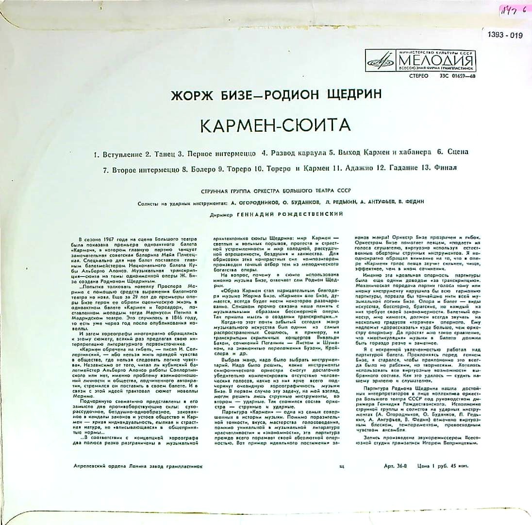 商品コード:1393-019t[MELODIYA] G.ロジェストヴェンスキー/ ビゼー(シチェドリン版):カルメン組曲