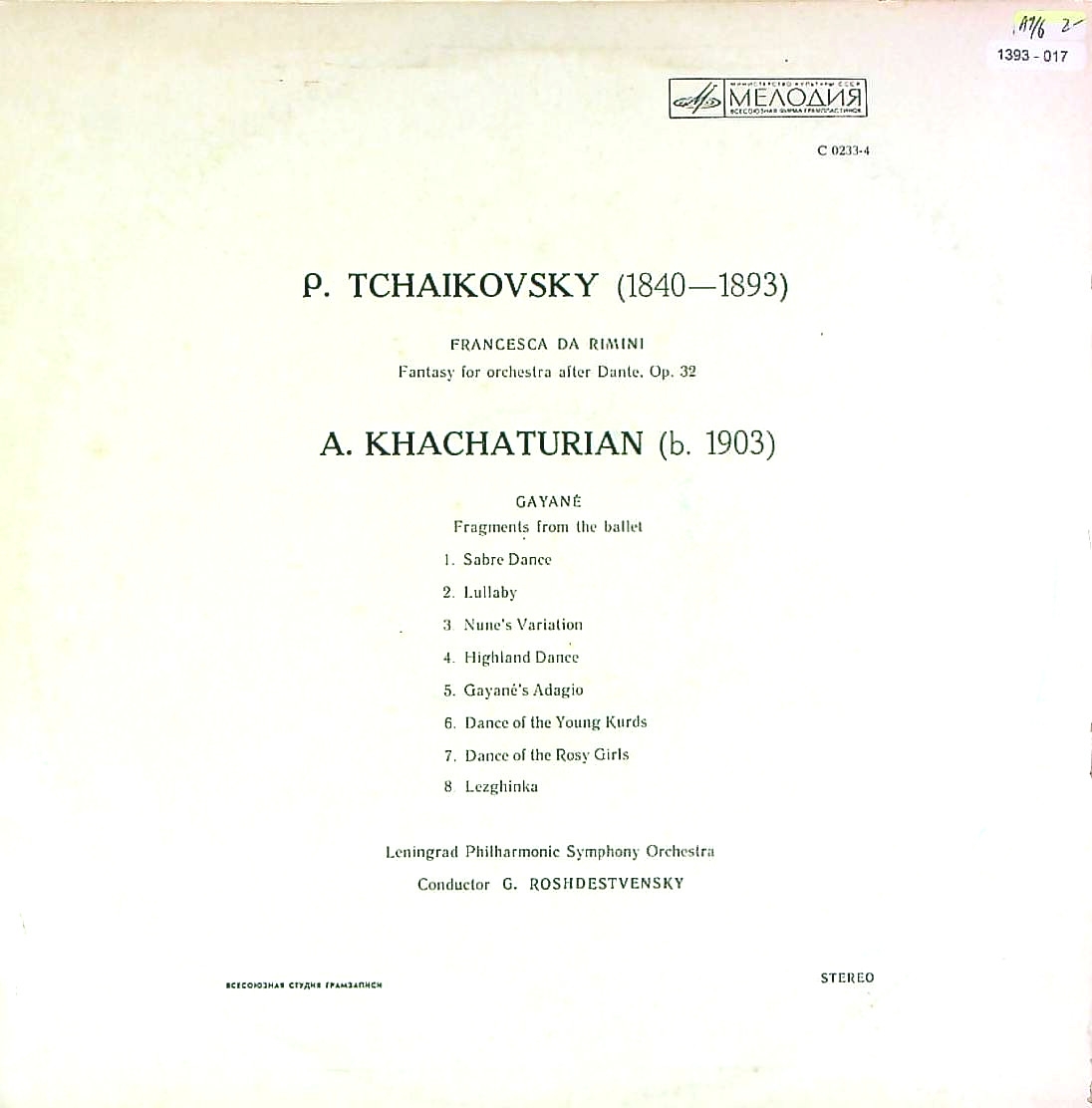 商品コード:1393-017n[MELODIYA] G.ロジェストヴェンスキー/ チャイコフスキー:フランチェスカ・ダ・リミニOp.32, ハチャトゥリアン:ガイーヌ(抜粋8曲)