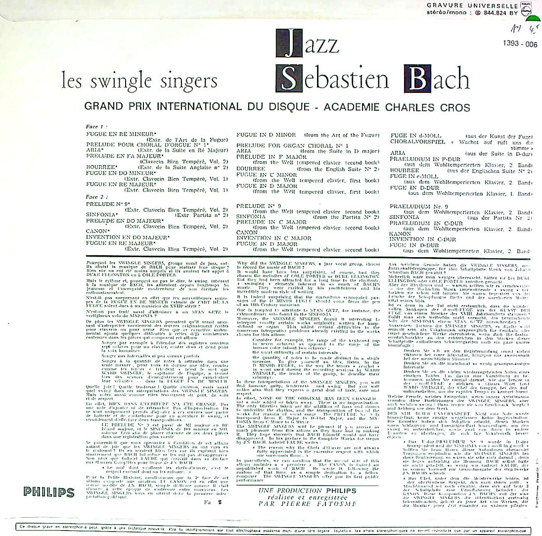 商品コード:1393-006[PHILIPS] スウィングル・シンガーズ / Jazz Sébastien Bach(全13曲)/平均律~前奏曲, フーガ, G線上のアリア, カノン, インヴェンション他