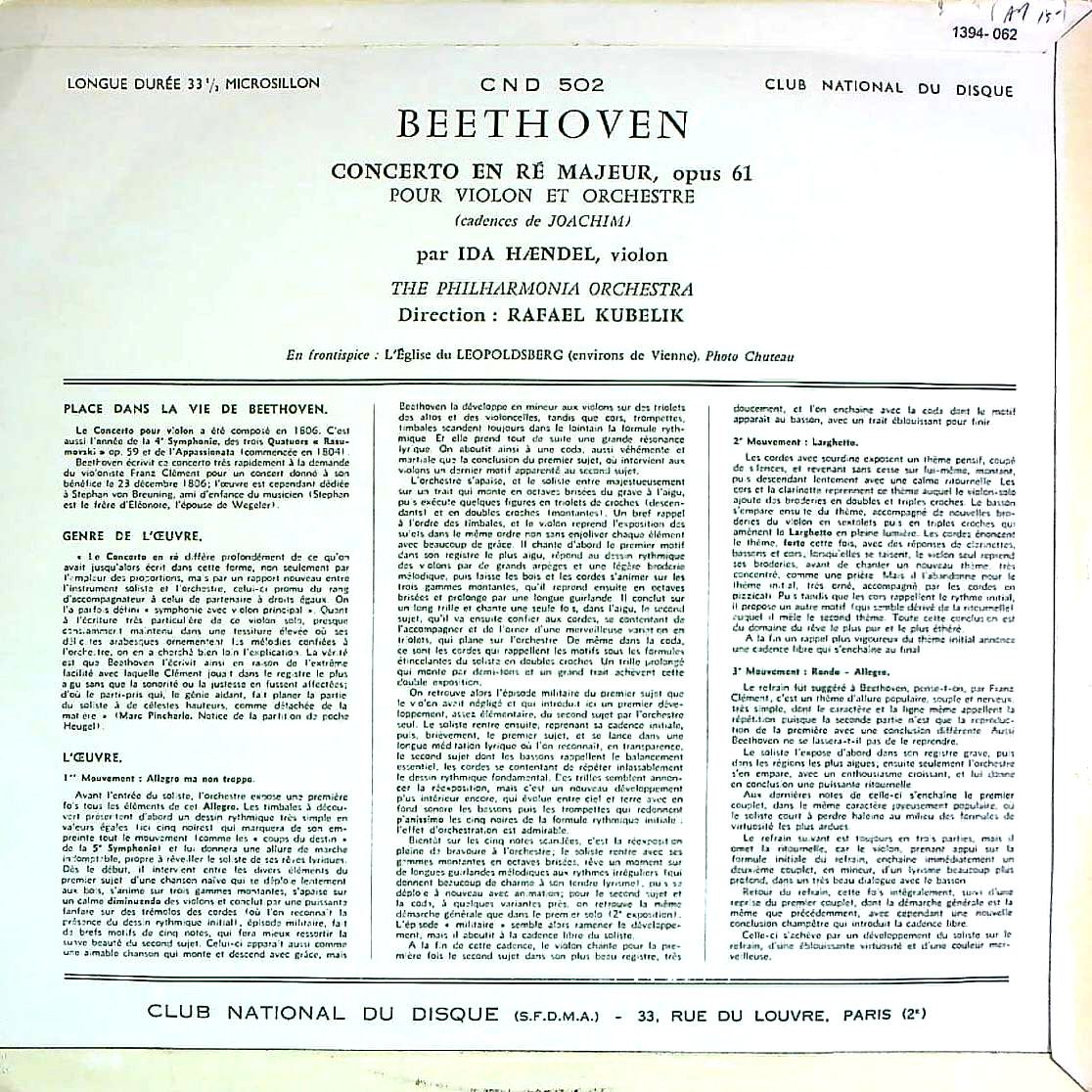 商品コード:1394-062[CLUB NATIONAL] I.ヘンデル(vn)/ ベートーヴェン:Vn協奏曲Op.61