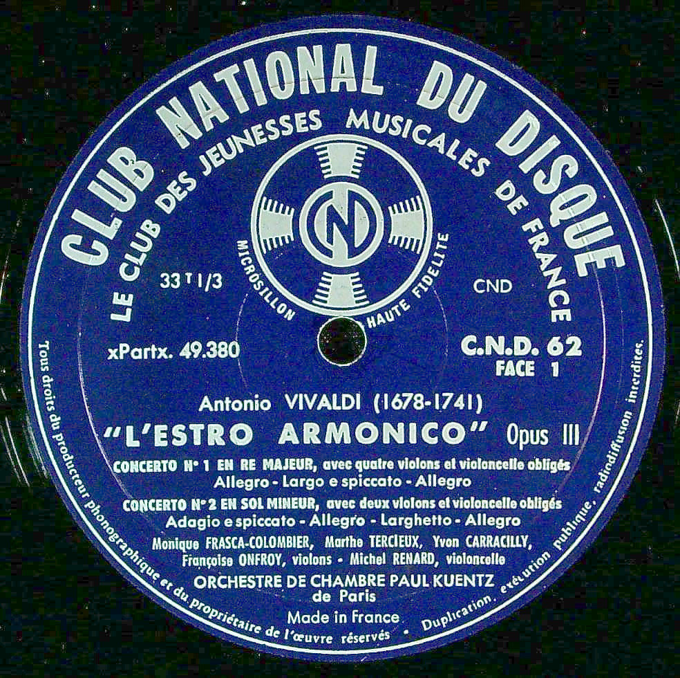 商品コード:1394-060[CLUB NATIONAL] P.キュンツ指揮 他/ ヴィヴァルディ:合奏協奏曲集「調和の霊感」Op.3(全12曲)