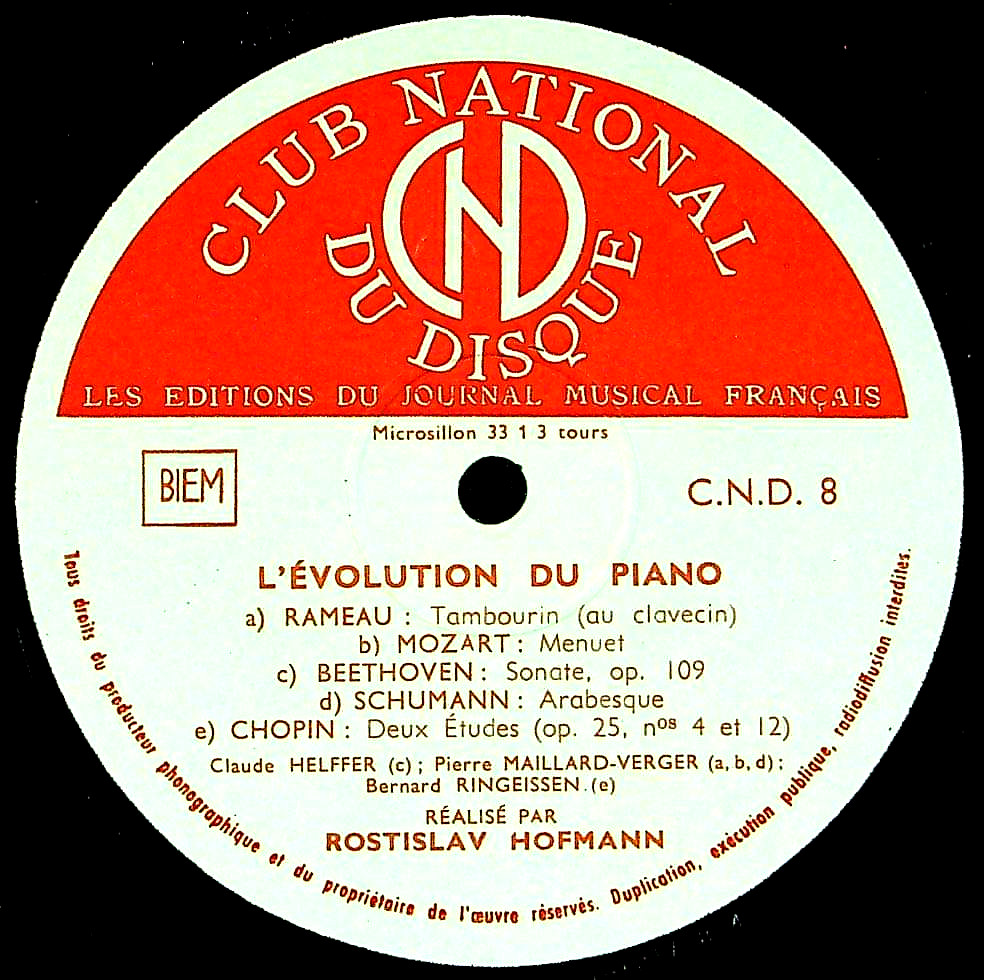 商品コード:1394-057b[CLUB NATIONAL] P.マイヤール・ヴェルジェ, J.ラフォルジュ 他全6名(pf) / ピアノ音楽の進展/ラモー, モーツァルト, ベートーヴェン, シューマン 他