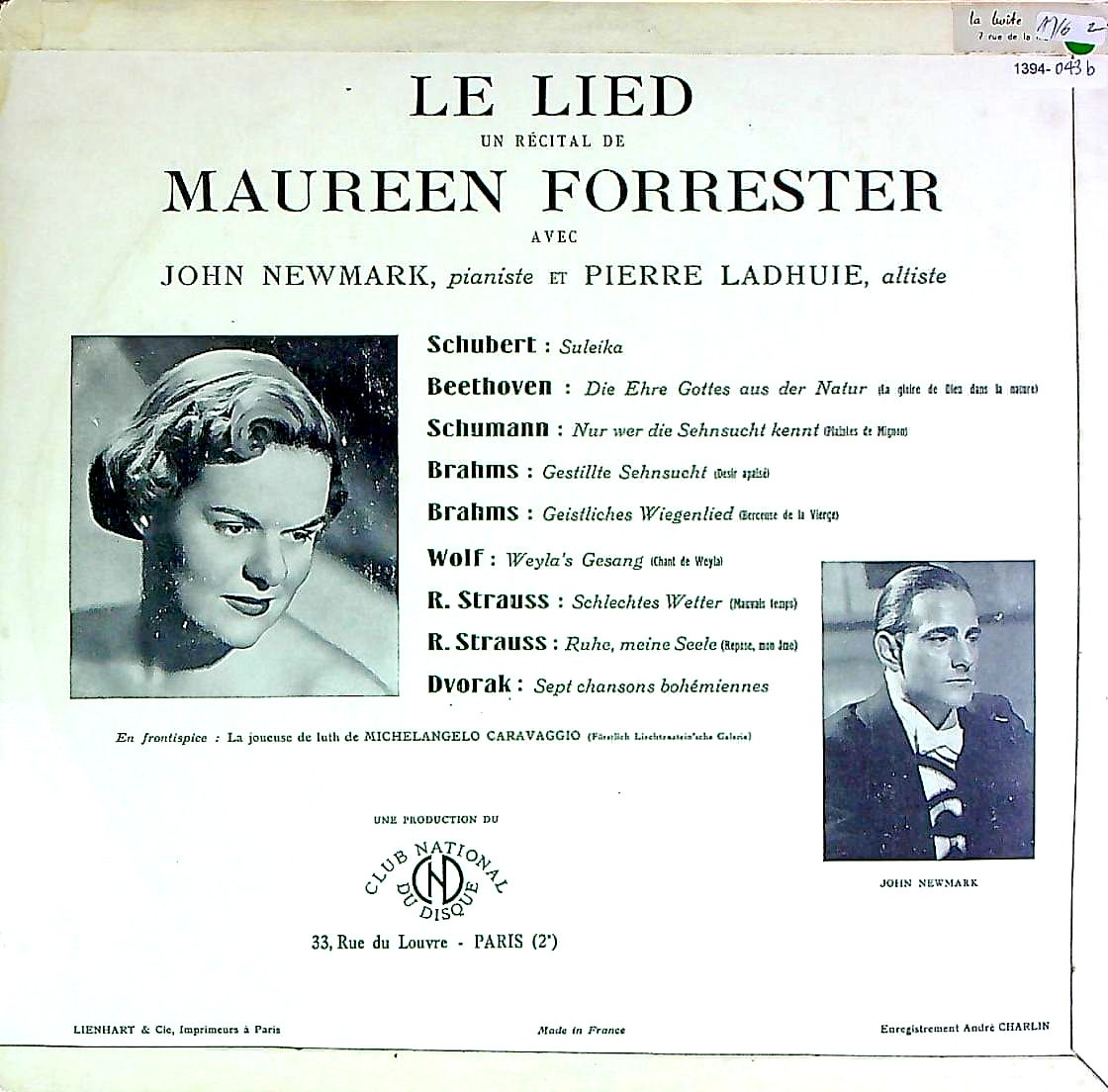 商品コード:1394-043b[CLUB NATIONAL] M.フォレスター(a)/ 歌曲リサイタル/シューベルト, ベートーヴェン, シューマン, ブラームス, ヴォルフ, R.シュトラウス, ドヴォルザーク