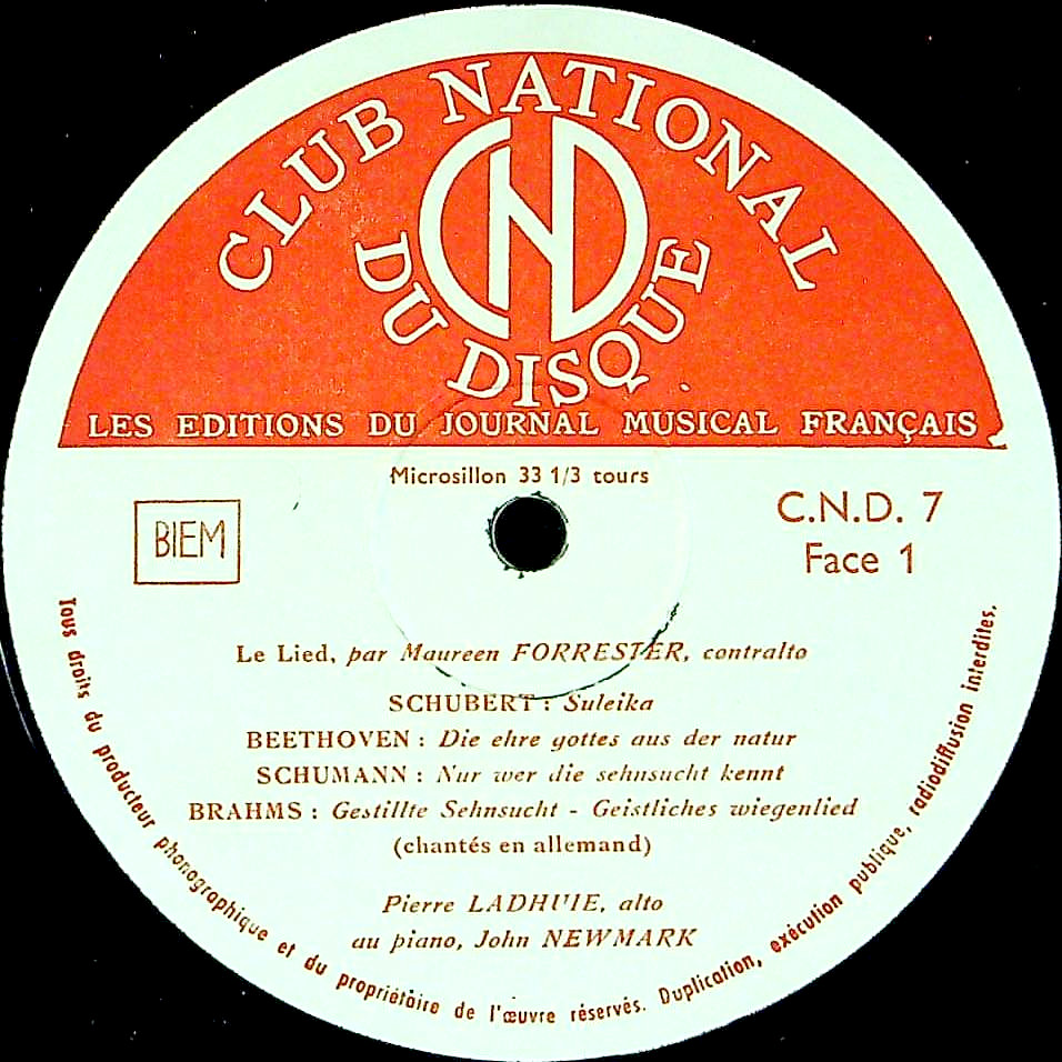 商品詳細:モーリン・フォレスター(1930-2016)はモントリオール生まれのアルト歌手。本名キャスリーン・ステュワート。17歳年上のキャスリーン・フェリアー(1912 - 1953)と並ぶ大物アルト歌手。ケベック州モントリオール東部の貧しい家庭に生れる。13歳で学校を中退して秘書や電話交換手の仕事をし、家計を支えた。声楽教師に支払うことが出来るようになり、サリー・マーティンやフランク・ロウ、バリトン歌手のバーナード・ダイアマントに師事。彼女のカナダ・デビューの1953年に地元のYWCAでデビュー・リサイタルを行う。このときの伴奏者ジョン・ニューマークとは、生涯にわたって協力関係を築くこととなった。1956年B.ワルターに認められ名声を得た。ワルターはマーラーのアシスタントであり、マーラー直伝の解釈をフォレスターに伝えた。翌1957年、フォレスターは、ニューヨーク・フィルハーモニー管弦楽団との共演により、ワルターの告別演奏会に出演した。マーラー歌手として有名だが、リートも得手とした。1958年にワルター最初のステレオ録音において、マーラー:「復活」の録音が実現した際、フォレスターが独唱者に招かれている。その後、大作作品の録音ではベイヌム(マーラー:第3交響曲)、フリッチャイ(ベートーヴェン:第9番/ブラームス:アルト・ラプソディ)、またトーマス・ビーチャムとはディーリアスの管弦楽伴奏付き声楽曲の録音も行った。また厳格で知られるフリッツ・ライナーとの「大地の歌」の録音(RCA)も秀逸である。歌手としては、ドイツ語の発音の正確なことで、また劇的な感覚に非常に優れていることで知られている。演奏会とオペラの両面に定期的に出演した。テレビ番組「タンタンの冒険」にも出演、ビアンカ・カスタフィオーレ役を務めた。アルト歌手としての国際的地位を獲得した。これは、珍しいクリュブ・ナショナルのオリジナル録音である歌曲集。また同社がシリーズ化した各楽器(声も含めて)の1枚に名を連ねた。独特の強烈な存在感。声域は広く、クセもなく、力のある数少ないアルト!声楽好きの方にはお宝級となる古いモノラル録音である。Club National du Disque以外では未発売と思われる。