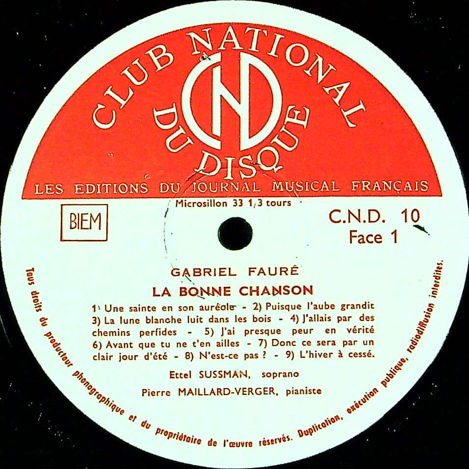 商品コード:1394-042[CLUB NATIONAL] E.シュスマン(s) / フランス歌曲集/フォーレ, ドビュッシー, ラヴェル
