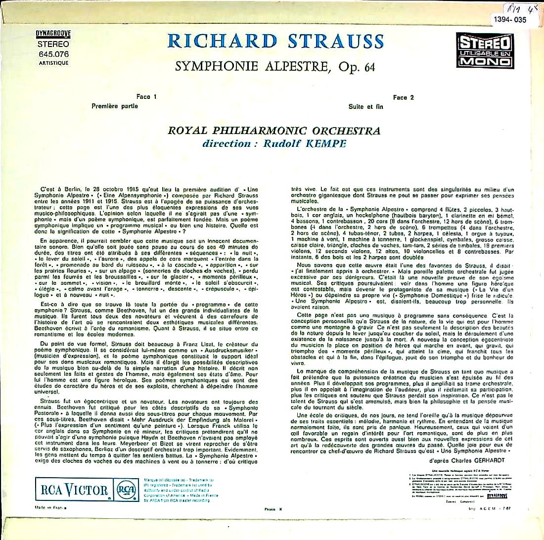 商品コード:1394-035[RCA] R.ケンペ/ R.シュトラウス:アルプス交響曲Op.64