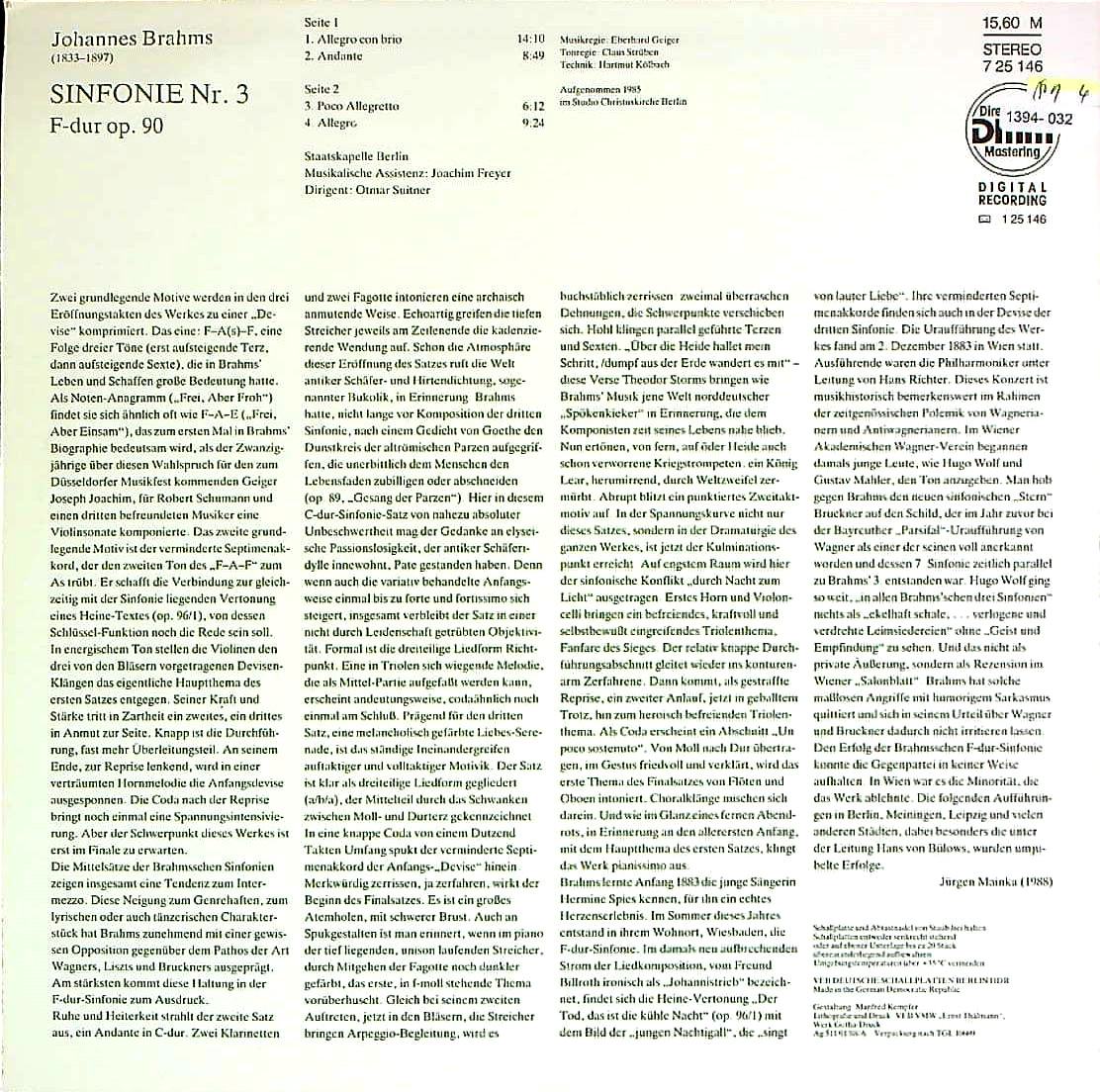 商品コード:1394-032n[ETERNA] O.スウィトナー/ ブラームス:交響曲3番Op.90