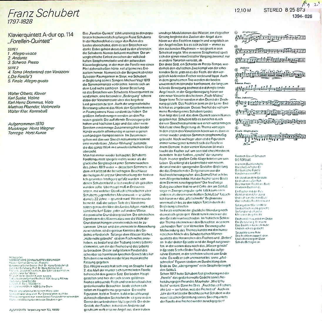商品コード:1394-026n[ETERNA] W.オルベルツ(pf) K.ズスケ(vn) K.H.ドムス(va) 他/ シューベルト:五重奏曲D667「鱒」