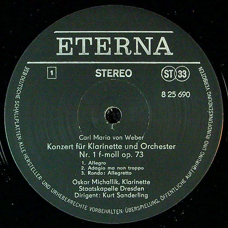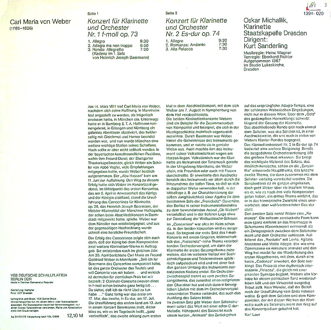 商品コード:1394-020n[ETERNA] O.ミヒャリク(cl) K.ザンデルリング/ ウェーバー:Cl協奏曲1番Op.73, 2番Op.74