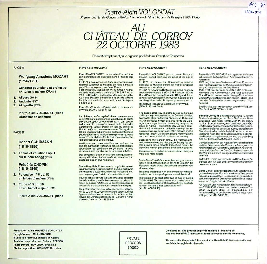 商品コード:1394-014[Private Records] J.P.ヴォロンダ(pf)/ モーツァルト:Pf協奏曲12番K.414, シューマン:アベッグ変奏曲Op.1, ショパン:英雄ポロネーズ6番, 12の練習曲~「黒鍵」