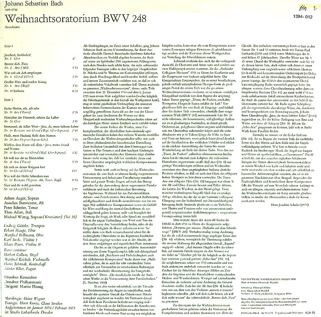 商品コード:1394-012n[ETERNA] M.フレーミヒ指揮 A.オジェー(s) 他/ バッハ:クリスマス・オラトリオBWV.248(ハイライト)