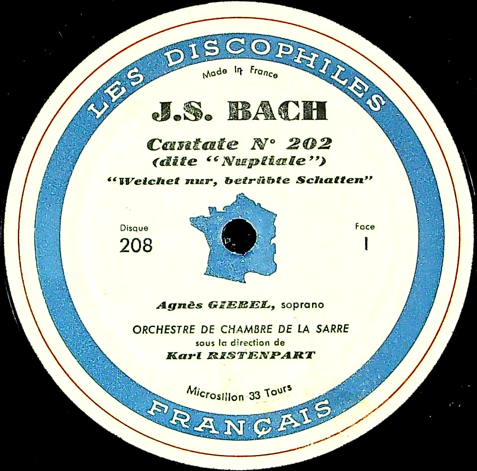 商品コード:1394-009[DF] K.リステンパルト指揮 A.ギーベル(s) / バッハ:カンタータ199番BWV.199, カンタータ202番BWV.202