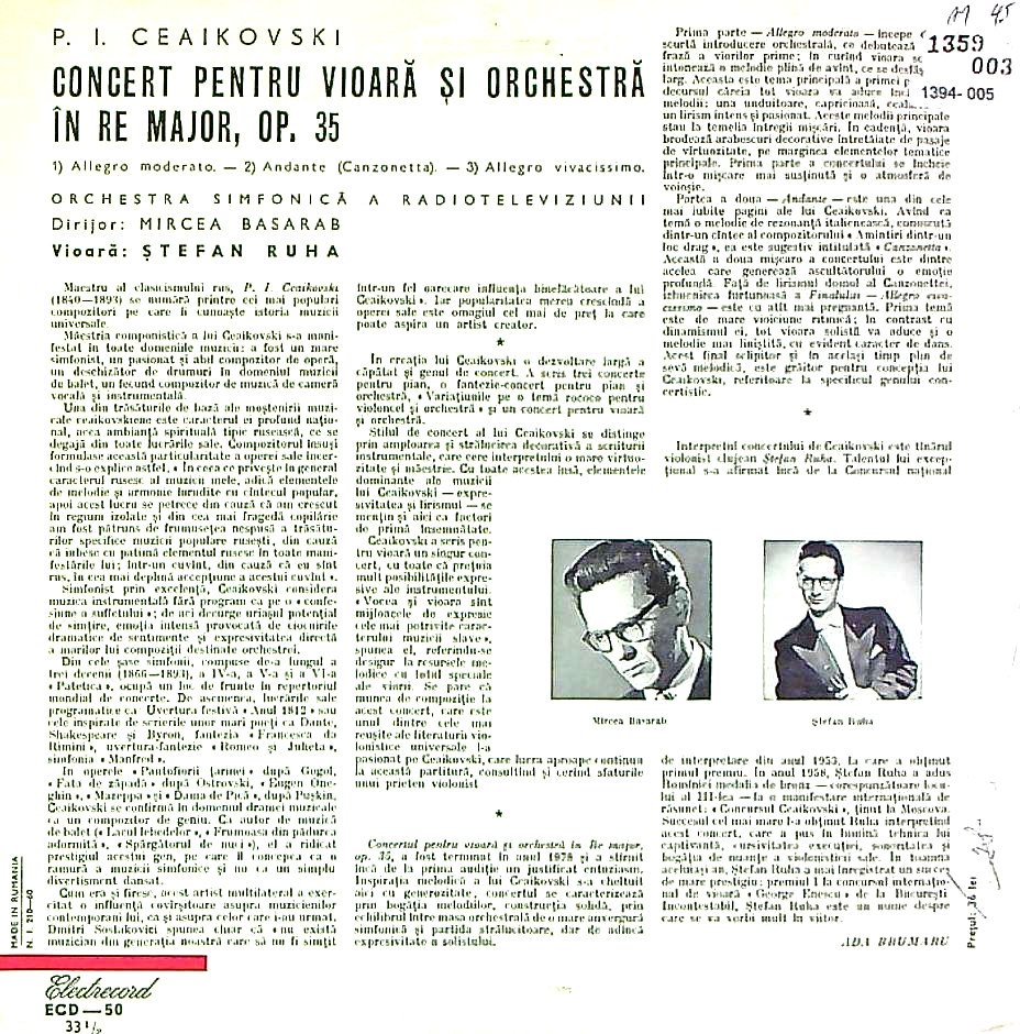 商品詳細:ルーマニア初期の赤に青いロゴでelectrecordと入った古いレーベルが初出。近年まで西側ではまったく知られることのないソリストだったが、'50年代のヴィルトーゾの一人に加えることにいささかの迷いもない個性豊かな演奏家だ。バリバリ弾く人ではなく、ナイーブな情緒的表現で、ラテン的な明るさを根底に持っている。それでいて、あっけらかんとしたところがなく、絶えず小さくヴィヴラートした音が琴線をくすぐる。ルーマニア国内に残ったトップランクのヴァイオリン奏者!シュテファン・ルハ(1931-2004)はさしずめルーマニアのズスケといっても過言ではない名手。1931年カレイ生まれ。クルジュ音楽院でF.バローグに師事。1949年にクルジュのロマーニャ歌劇場の団員となり、1957年同劇場のコンマスとなった。1958年第1回チャイコフスキー国際コンクール第3位。1959年ロン・ティボー・コンクール2位。1964年クルジュフィルハーモニーQt.のリーダー。非常に澄んだ透明度の高い音。モノラル期から変わらず優れたVn奏者。'50年代ヴィルトーゾのようにルバートを使い、しみじみと聴かせるタイプ。実に情緒的な表現をする人だ。忘れ去られた古き良き時代が再現されたかのようだ。彼の録音はどれも評価が高い。チャイコフスキーは当初10"でモノラル発売された。