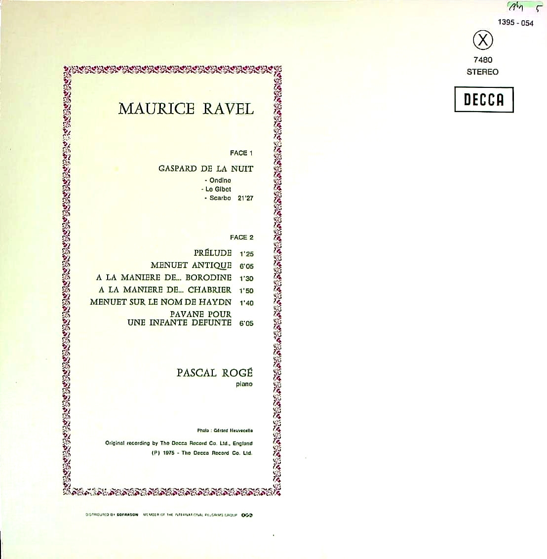 商品コード:1395-054p[DECCA] P.ロジェ(pf) / ラヴェル:Pf独奏曲全集vol.2(全7曲)/夜のガスパール, 前奏曲イ短調, 亡き王女のためのパヴァーヌ 他